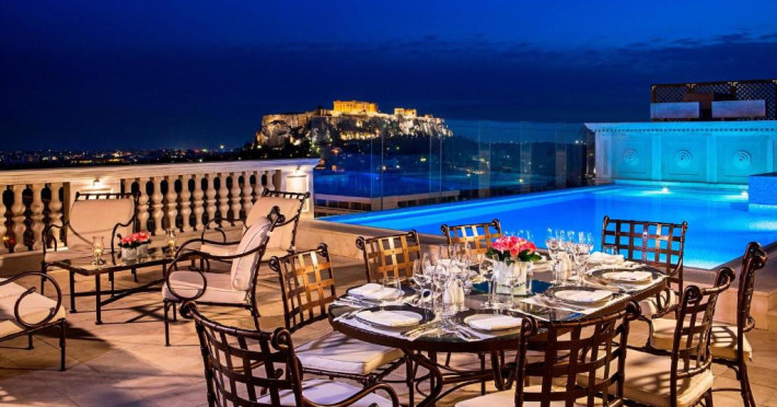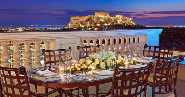 Situat la etajul 7, restaurantul Tudor Hall servește preparate grecești și gourmet și oferă vedere panoramică la Atena. Oaspeții se pot relaxa cu o băutură sau un cocktail in barul hotelului.
