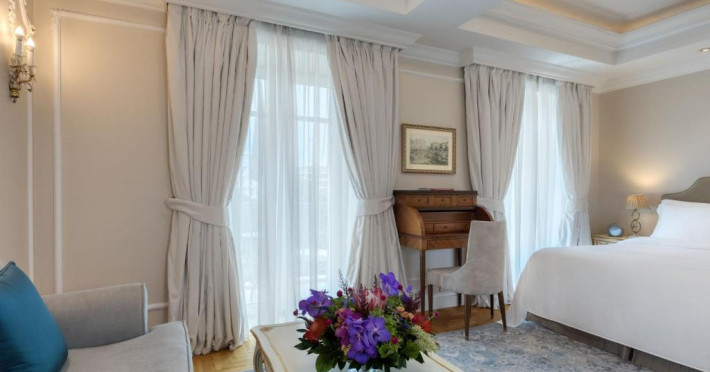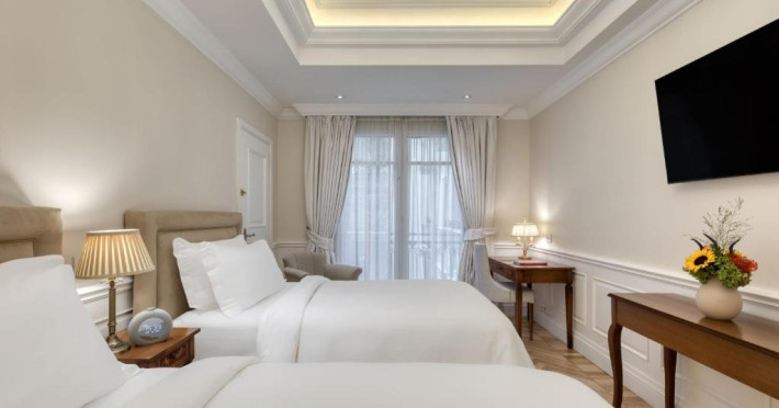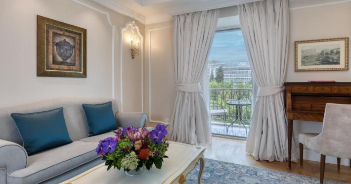 Decorate luxos cu elemente și candelabre deosebite, toate camerele au balcon sau fereastră cu vedere la Acropole sau la curtea interioară linistită. Baia include halate de baie, papuci și articole de toaletă gratuite.