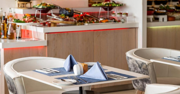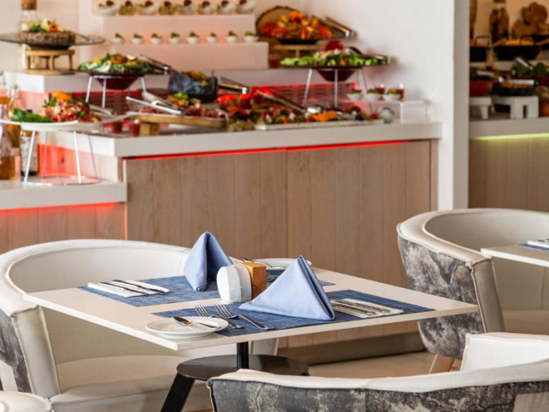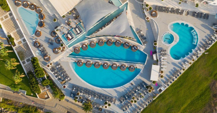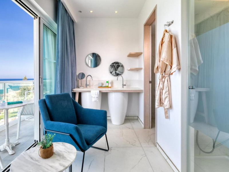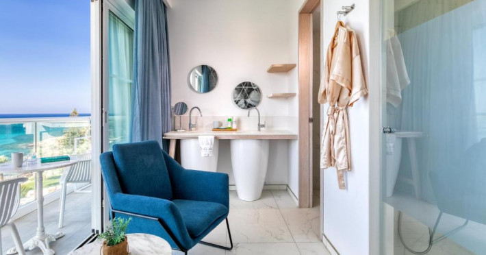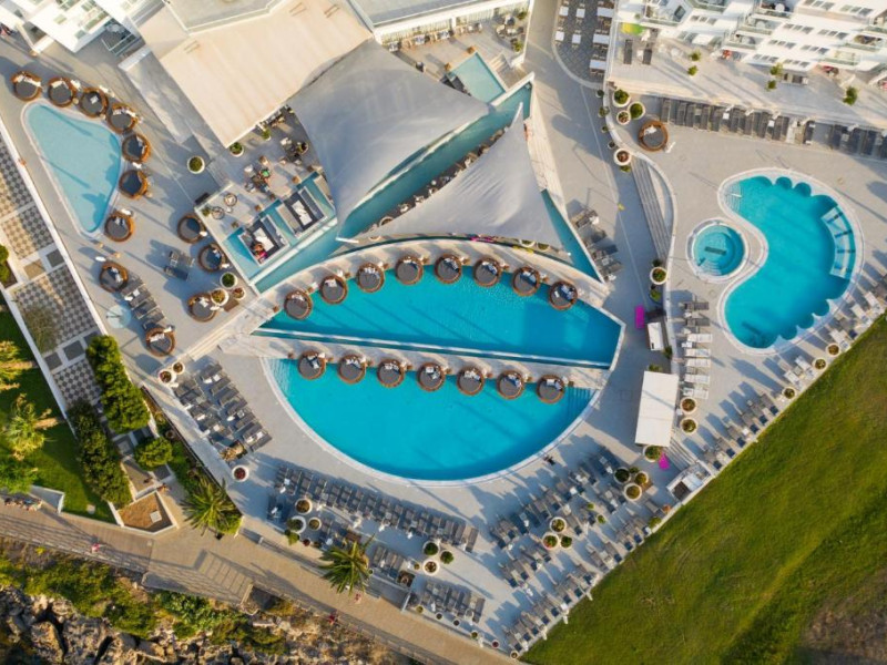 Camerele luminoase combină eleganța cu confortul modern, multe dintre ele oferind vederi spectaculoase spre Marea Mediterană. Facilitățile premium includ două piscine exterioare inconjurate de șezlonguri și umbrele, un centru spa cu servicii complete, sală de fitness și un restaurant principal cu bufet internațional.
