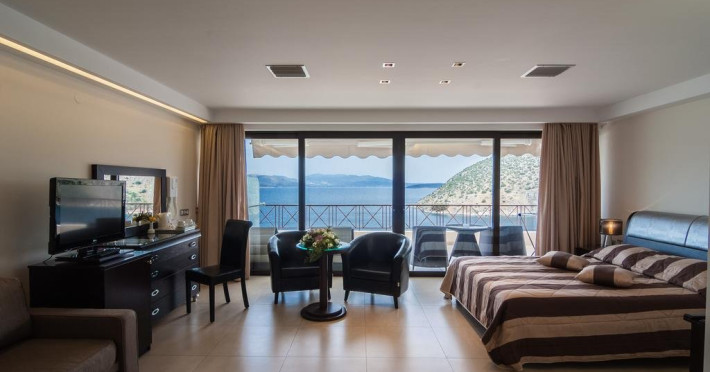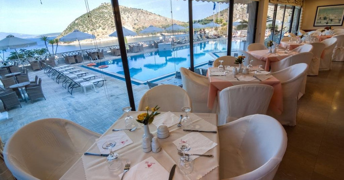 Restaurantul hotelului serveste preparate grecesti si internationale, putand satisface in acelasi timp vegetarieni, vegani si persoanele cu alergii alimentare. Restaurantul hotelului este un loc excelent pentru a gusta delicatese grecesti, savura un vin fin si admira privelistile frumoase din Tolo.