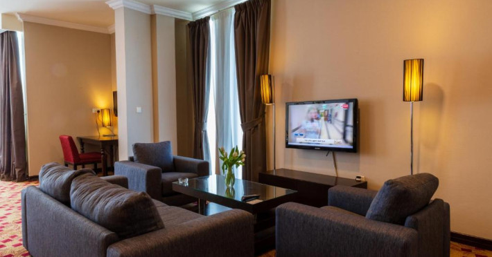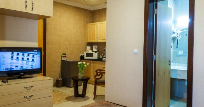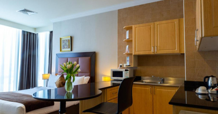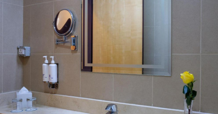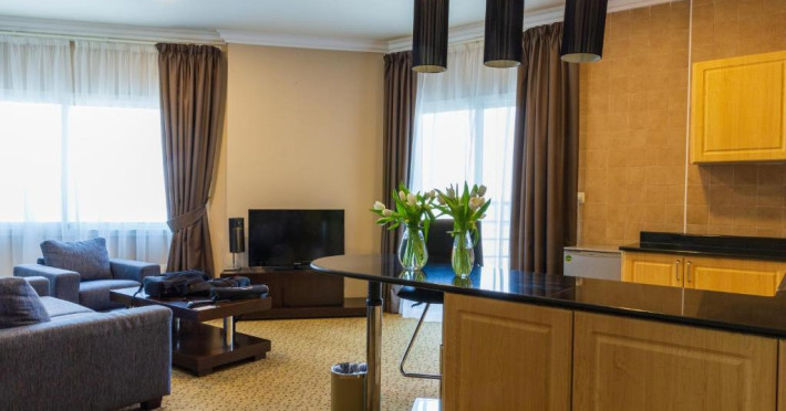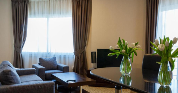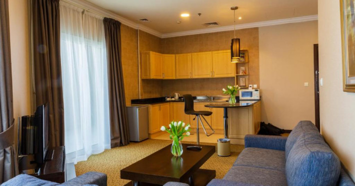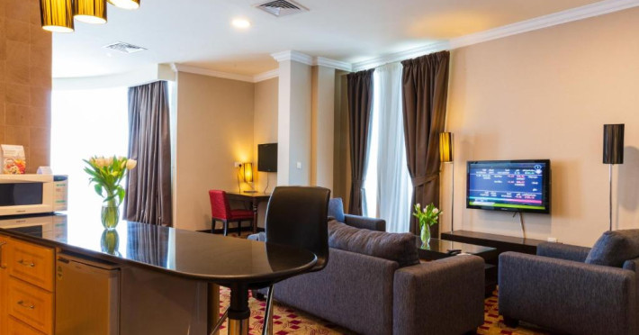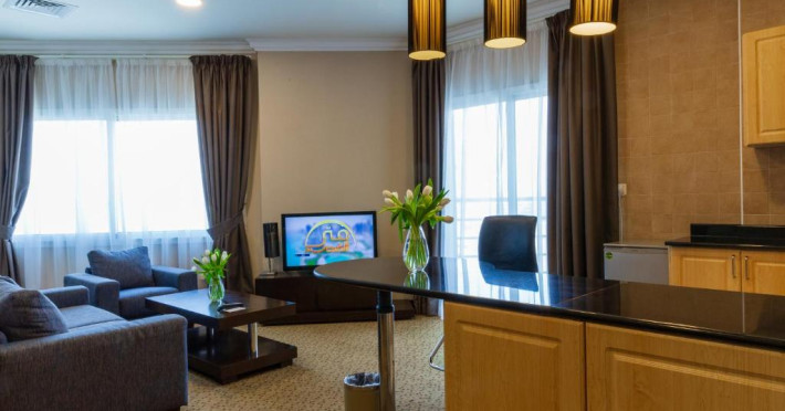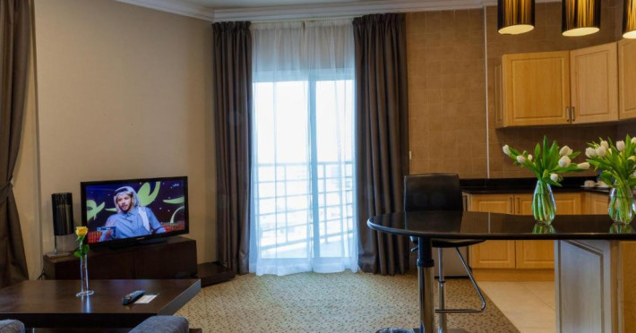 Toate camerele au TV de 32 inch cu canale prin satelit și chicinetă cu fierbător electric și cuptor cu microunde. Unele camere au ferestre din podea pană in tavan sau balcon cu vedere la Doha.