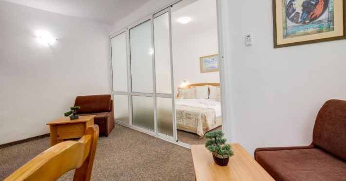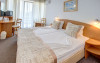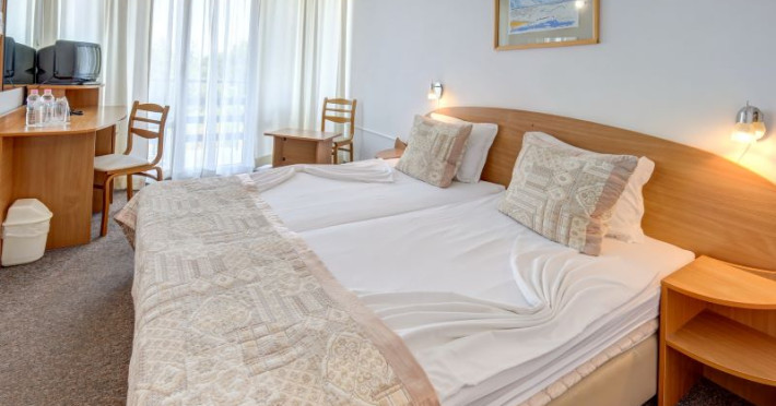 Camerele sunt echipate cu minibar, televizor, telefon, aer condiționat, baie cu duș, uscător de păr și balcon.