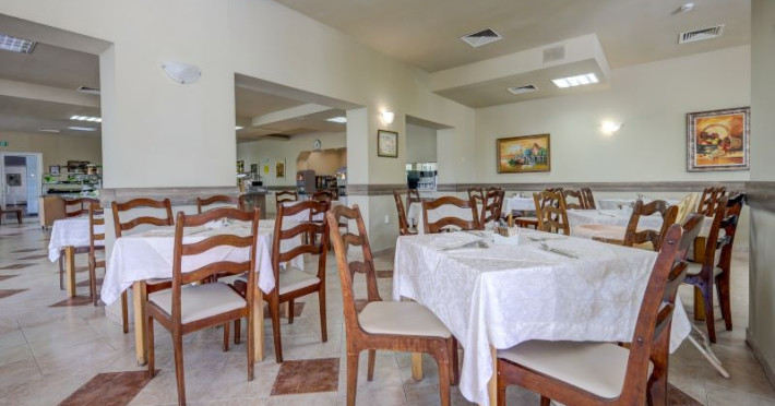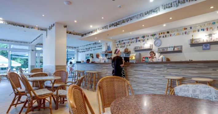 Hotelul dispune de un restaurant cu o terasă generoasă, o piscină în aer liber, inclusiv o zonă special dedicată copiilor, un bar lângă piscină, facilități de joacă pentru cei mici, un magazin de suveniruri, conexiune Wi-Fi, servicii de coafor, un salon de masaj, acces la internet, facilități de biliard și tenis de masă, cabinet medical, serviciu de schimb valutar și parcare.
