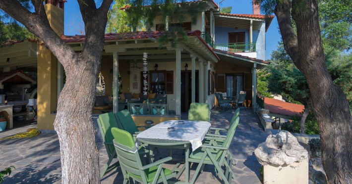 Under the shadow of Mount Athos At the turquoise Ierissos gulf, right on the beach and under the imposing shadow of Mount Athos, Kiparissi Villa is situated. Kiparissi Villa is a beautiful, fully organized and independent holiday villa 400sqm, built in an area of 4.2 acres,. It can accommodate up to ten people, offering unforgettable moments. Kiparissi Villa has 5 separate spacious bedrooms with 3 queen size beds and two doubles, 6 bathrooms and very spacious and comfortable common areas (living room and fully equipped kitchen). Kiparissi Villa, apart from the breathtaking views to the sea and to Mount Athos, because of its ideal location between Ierissos and Nea Roda, offers a peaceful and tranquil atmosphere and relaxing moments bu the sea, which one seeks during his vacation. However, for those who prefer the vibrant nightlife, Ierissos is just six minutes away by car and Nea Roda seven minutes.