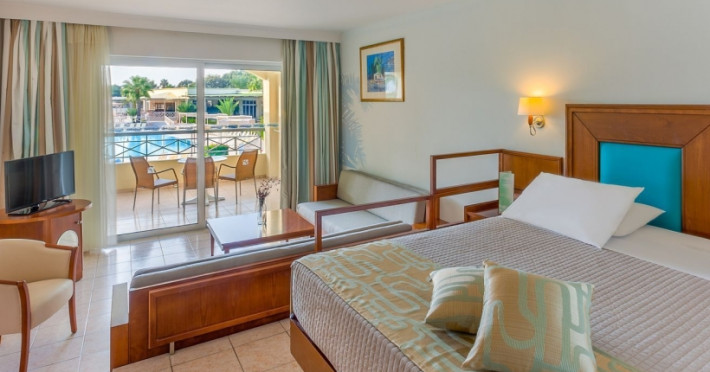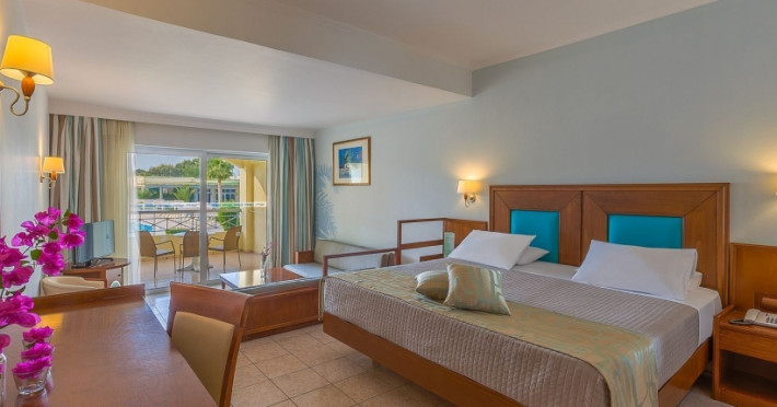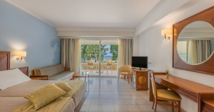 Oaspeții au la dispoziție serviciul de room service pentru a servi masa sau diverse băuturi. Camerele de la Kipriotis Maris Suites sunt dotate cu aer condiționat, Tv cu canale prin satelit și seif. În camere există baie cu cadă sau duș, foehn, precum și halate de baie și papuci. Unele camere au balcon cu vedere la grădină sau la piscină. Curățenia in cameră se face zilnic.