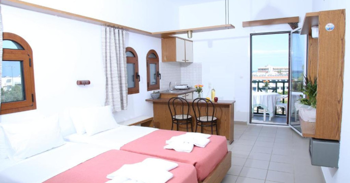 Amplasat în Stalida (Creta-Heraklion), Kiriakos Apartments se află la 100 m de plaja Eleohori și oferă apartamente cu aer condiționat, grădină și terasă în aer liber. Proprietatea are servicii de închirieri auto. Se oferă acces gratuit la internet Wi-fi în spațiile publice. Parcarea este disponibilă la proprietate gratuit.