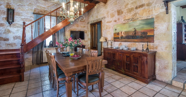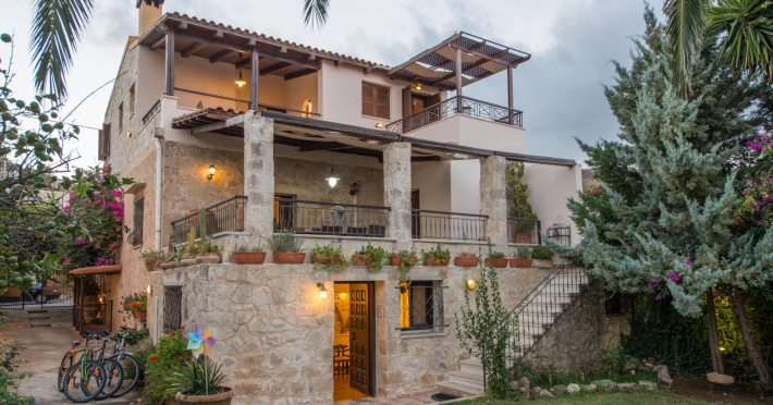 Villa Aloni is a brand new 4-bedroom Villa with a sea view private pool, located in the small traditional village of Agios Georgios, 6 km from the town of Kissamos. The famous sandy beach of Falasarna is located 8 km away and the tropical style beach of Elafonisi 48 km away. The ground floor of the Villa has an open plan living room with a fireplace, a dining area and a fully equipped kitchen. One bedroom with a double bed, one separate room with a sofa bed which turns into a double bed, and a common luxury marble shower bathroom are provided. The upper floor offers two bedrooms with an en-suite bathroom each. The master bedroom with a double bed, an office area, a bathtub and an en-suite WC, and a twin bedroom with two single beds, which can be converted into a double bed and an en-suite shower bathroom. Guests can enjoy a relaxing time in the big grassy courtyard with beautiful sea views. A lovely private swimming pool of 60 sqm with sun loungers and sun umbrellas, a garden with fruit trees and herbs, and a barbecue corner are provided. Free wireless internet, air conditioning, washing machine and dishwasher are offered. LCD 50” TV in the living room, LCD 32” TV in the 2 bedrooms, Satellite TV, CD player and DVD player are also provided. Daily breakfast service in Villa can be provided with an extra cost, while bottled water and fresh fruits are given complimentary upon arrival. Located in scenic Kalyviani Village, 800 m from the beach, Arhontariki is a traditional, self-catered villa with a private swimming pool and free Wi-Fi. It features furnished verandas overlooking Kissamos Bay. The fully air-conditioned Villa Arhontariki is furnished with antiques and features wooden ceilings and stone walls. It includes a fully equipped kitchen and dining room. Each bedroom features en suite facilities. There is lots of seating space in the living room where guests can watch TV by the fireplace. A small gym and playroom with table tennis facilities are available. The swimming pool area is surrounded by a well-tended garden with lemon trees, palm trees and bougainvilleas. Free bicycles are offered to the guests. Kalyviani Village is lively and has cafés and taverns serving Cretan dishes. The Port of Kasteli is just 800 m away while the city of Chania is at 35 km. Free private parking is offered at the Arhontariki Villa premises.