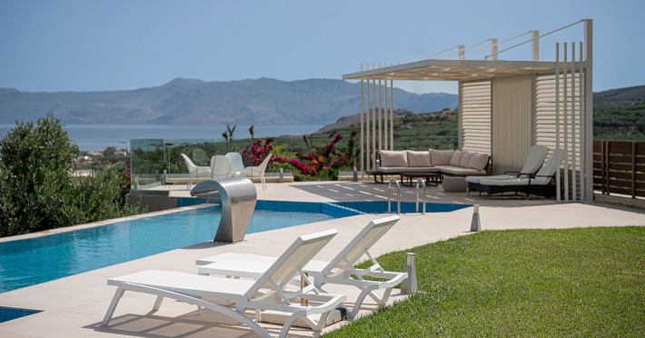Kissamos Luxury Villas are located in two beautiful villages of Kissamos prefecture and consist of two different villas, Villa Archontariki and Villa Aloni. Fotini's family were the owners of a traditional, 100 years old, two-storey house. The owners (Fotini and Giannis Xirouchakis) bought this house and 25 years ago they renovated it and transformed it into Villa Archontariki. Villa Archontariki is a harmoniously, vibrant mix of traditional luxury and high aesthetics. It is built on three levels and can accommodate up to 8 people, offering all modern amenities, located in the scenic Kalyviani Village, 1 km away from the beach. Villa Aloni combines the beauty of the Cretan landscape with contemporary architectural design and artfully decorated spaces. It consists of two levels and can accommodate up to 8 people. The villa is situated in the picturesque village of Agios Georgios, pretty close to the sea. The charming seaside town of Kastelli Kissamou (Kissamos) is located 42 km away from Chania.