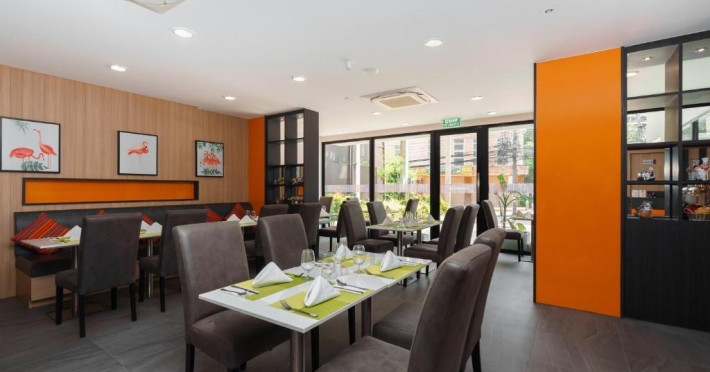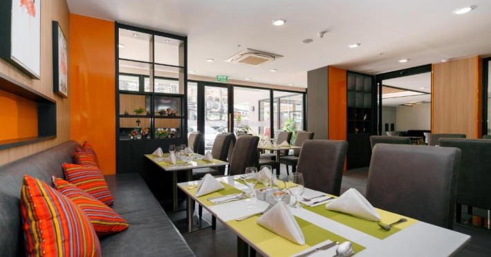 Proprietatea servește un mic dejun tip bufet, american sau asiatic. KK Karon Kata Boutique Hotel are un restaurant care servește preparate din bucătăria locală, asiatică și europeană.