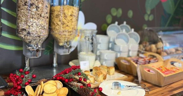 In fiecare zi se serveste un mic dejun tip bufet, iar localul cu autoservire oferă băuturi, gustări si meniuri fixe. In plus, la mai putin de 10 minute de mers pe jos veti găsi cateva baruri si restaurante.