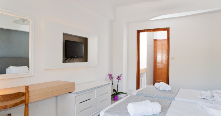 dotata cu paturi twin sau 1 pat dublu si 1 pat suplimentar de o persoana