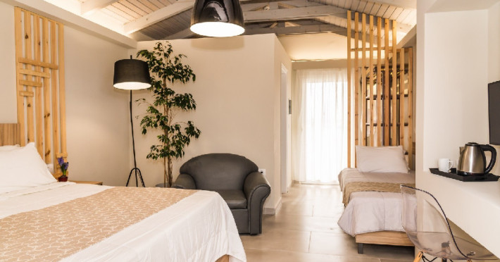 Camera dubla superioara este de aprox. 22 m2, ideala pentru pana la 3 invitati, este