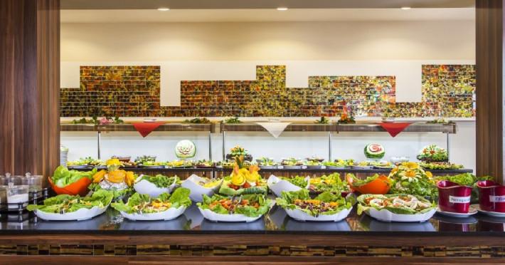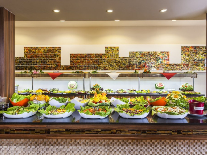 Facilitati hotel: Oaspetii pot beneficia de restaurant, restaurant A la Carte, baruri, piscina exterioara, sezlonguri si umbrele, internet ( contra cost ), tenis de masa, darts, volei, biliard, fitness, spa, piscina pentru copii, loc de joaca pentru copii.