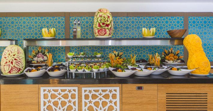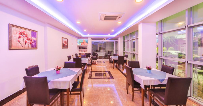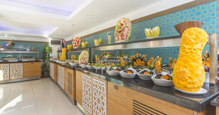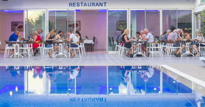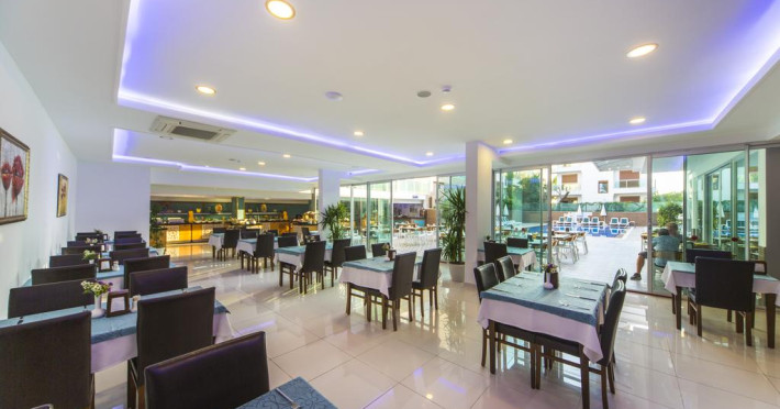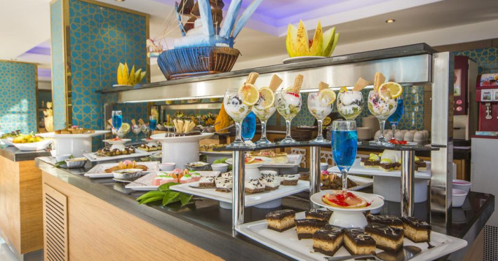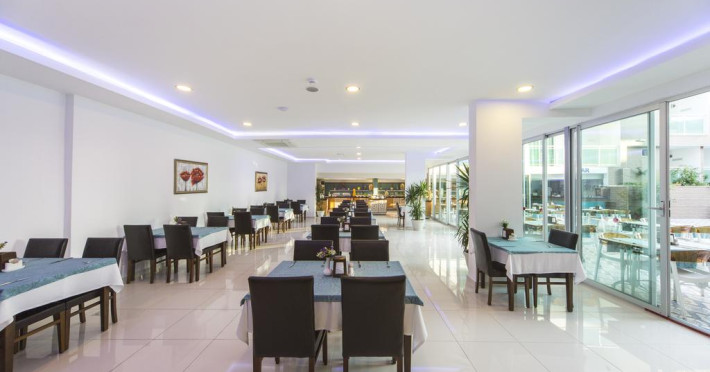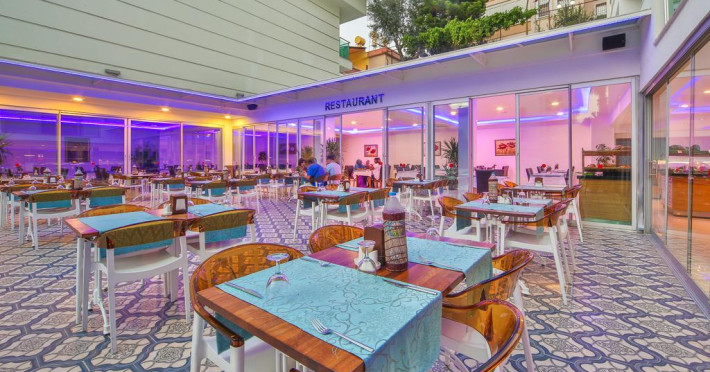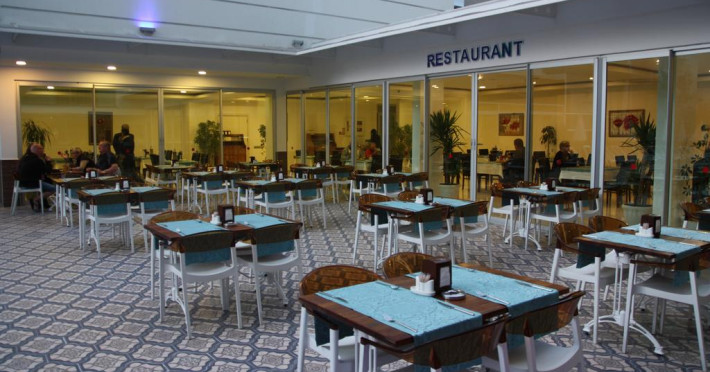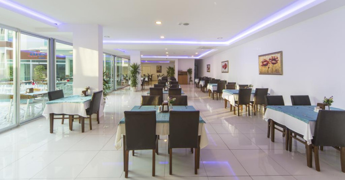 La Kleopatra Atlas Hotel oaspeții au la dispoziție un restaurant care servește mâncare în stil bufet. Masa poate fi servită atât în interior, cît si în aer liber, pe terasă, în funcție de vreme. Oaspeţii pot avea diverse băuturi răcoritoare sau alcoolice la bar.