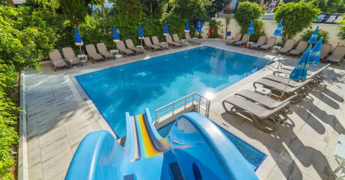 Situat pe coasta Kleopatra din Alanya, acest hotel este in apropierea plajei si ofera servicii all inclusive. Camerele ofera vedere laterala la mare si la zonele de relaxare. Restaurantul principal serveste mic dejun, pranz si cina, iar snack barul ofera prajituri si dulciuri. De asemenea, oaspetii pot savura si o gama larga de cocktailuri la bar.Facilitati camere