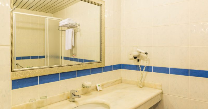 Fiecare cameră este echipată cu aer condiționat, seif, televizor, minibar, telefon, baie dotată cu duș/cadă, uscător de păr și balcon.