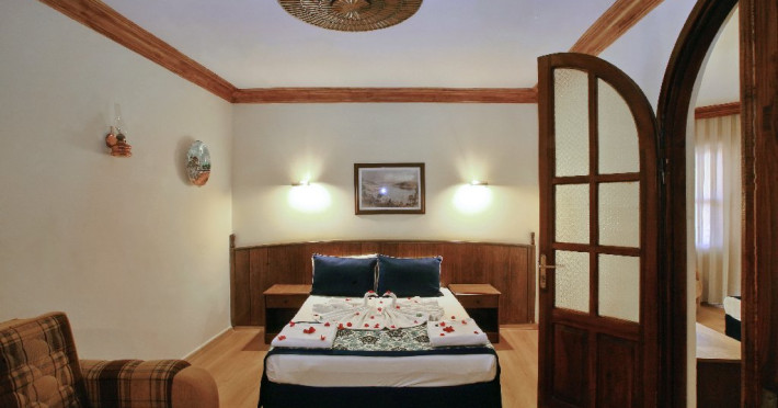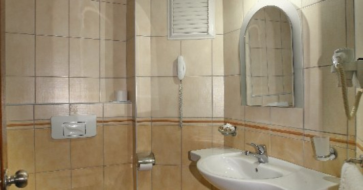 Facilitati camere: hotelul are 80 de camere, impartite intre cladirea principal si o anexa, cu vedere la piscina sau la gradina. Camerele sunt standard (20mp, ocupare maxima 2 adulti+ 1 copil), family room ( ocupare maxima 2 adulti + 3 copii sau 4 adulti + 1 copil) si camere pentru persoane cu dizabilitati. Toate camerele sunt dotate cu aer conditionat, seif(contra cost), televizor, telefon, baie cu dus, uscator de par, wifi(contra cost), mini frigider.