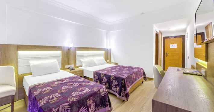 Descriere: Hotel situat pe plaja, ofera oaspetilor numeroase facilitati.Localizare: hotelul este situat in Alanya, la aproximativ 120 km distanta fata de aeroportul international Antalya.
