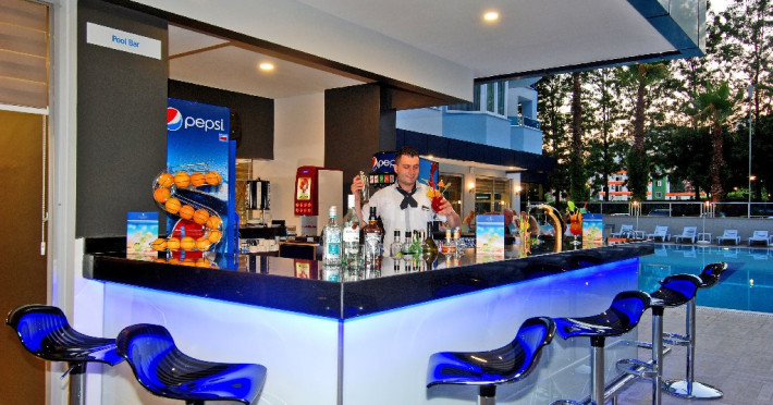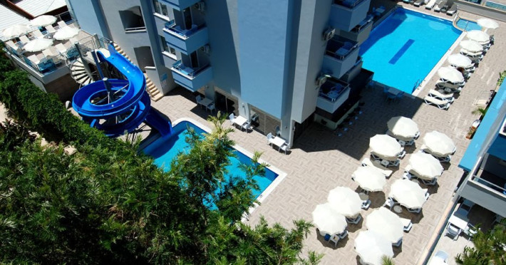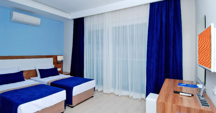 Facilitati hotel: piscina cu tobogan pentru copii, un centru SPA si Wellness cu baie turceasca, sauna si sala de fitness, un restaurant, meniul include preparate culinare cu specific turcesc si international, barul de la piscina ofera oaspetilor o gama variata de bauturi racoritoare, alcoolice, cafele, cocktailuri si gustari usoare, spectacole de divertisment, acces la piscine si tobogan, club pentru copii si loc de joaca, sezlonguri, umbrele, saltele si prosoape gratuite pentru piscina si/sau plaja, sauna, baie turceasca (hammam), sala de fitness.