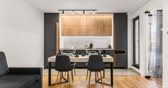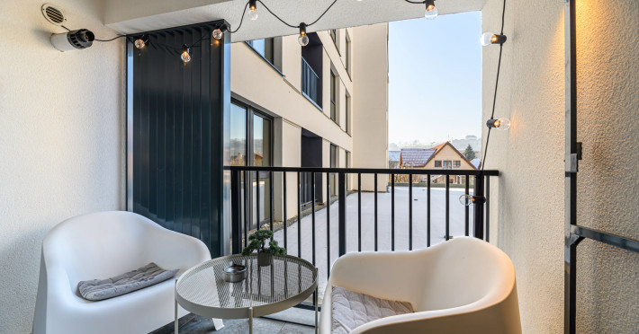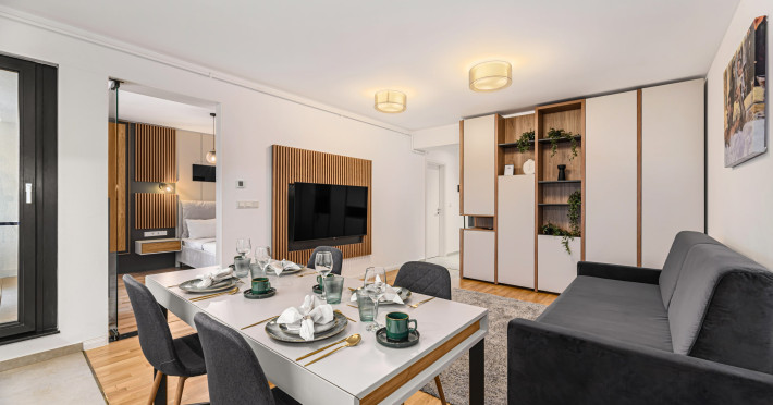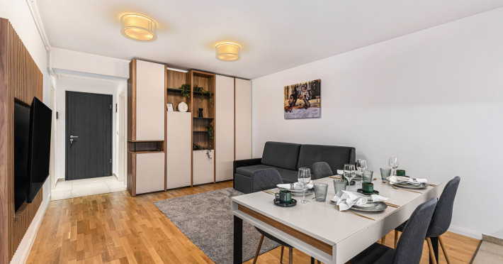 Motive pentru a alege KOA | Moft Apartment: Localizat langa centrul Brasovului Parcare gratuita in subteran Wi-Fi rapid Cafea si Ceai din partea casei KOA | Moft Apartment este alegerea perfecta pentru calatorii de afaceri, pentru familii cu copii, pentru cupluri . Este situat intr-un bloc nou, linistit cu o multime de facilitati. Locatia este excelenta pentru un sejur in orice anotimp, pentru cumparaturi, plimbari prin oras, o supriza pentru cei dragi sau petrecerea timpului liber in liniste. KOA | Moft Apartment este o proprietate deosebita ce detine absolut tot ce poate fi considerat necesar chiar si de catre cele mai exigente persoane. Aflat intr-un cartier linistit, in zona centrala a Brasovului, acest apartament are o suprafata de 60 m² / 645 ft² si o multime de dotari necesare cum ar fi: locatie de lux, parcare privata in subteran, incalzire in pardoseala, masina de spalat, bucatarie complet utilata, restaurante si centre comerciale in apropiere, wifi de mare viteza, cafea espresso si ceai din partea casei. Apartamentul are 1 dormitoar foarte spationas. Dormitorul 1: pat king size Living: canapea extensibila Primul dormitor are un pat king size , saltea profesionala cu spuma cu memorie si arcuri individuale, cu fermitate medie, televizor smart dimensiune 108" UHD cu Netflix si dulap pentru depozitare si acces la terasa. Zona de living este foarte spatioasa, cu o canapea extensibila care poate acomoda cu usurinta 2 pentru dormit. De asemenea, mai exista si un televizor smart 139" UHD cu Netflix. Bucataria este echipata complet, astfel ca poate sa indeplineasca cerintele tuturor, de la cei care vor sa gateasca o simpla omleta dimineata, la cei care vor sa gateasca preparate complexe. Bucataria are: cuptor, combina frigorifica, plita electrica, hota si aparat de cafea Nespresso. Este utilata cu toate ustensile de bucatarie necesare pentru diferite preparate. De asemenea, exista un set complet de luat masa pentru 4 si pahare pentru majoritatea tipurilor de bauturi. Acest apartament are 1 baie, dotata cu dus walk-in, prosoape, uscator de par, gel de dus, sampon si hartie igienica. Balconul are o suprafata de 5 m² / 53 ft² si ofera o vedere superba asupra orasului si cetatii medievale a Brasovului. De altfel, pe terasa exista o zona de luat masa pentru 2 persoane. Pentru ca ne dorim sa ai parte de tot confortul, la cerere iti putem oferi fara un cost suplimentar: patut pentru bebelusi jocuri de societate scaun inalt paturi sau pilote suplimentareDatorita dinamicitatii domeniului disponibilitatea ofertelor se modifica de la un moment la altul. De aceea ofertele sunt valabile in limita locurilor disponibile. Agentia nu este responsabila pentru eventualele neconcordante care pot aparea intre informatiile privind tarifele si alte detalii din site si informatiile primite in agentie. In aceste cazuri vor avea prioritate, intotdeauna, informatiile primite in agentie.