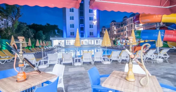Hotelul pune la dispozitia turistilor restaurant principal, 3 baruri, piscina exterioara, tobogan, sala de conferinte, loc de joaca pentru copii.