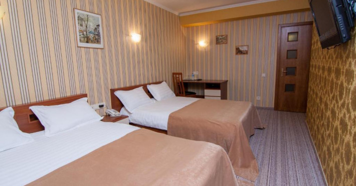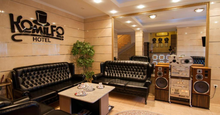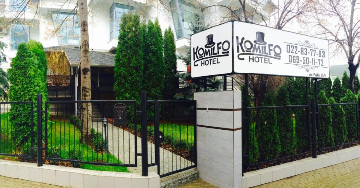 Situat in partea centrală a Chișinăului, la 400 de metri de Catedrala Nașterea Domnului, Hotelul Komilfo oferă camere cu WiFi gratuit, o terasă și parcare interioară privată.