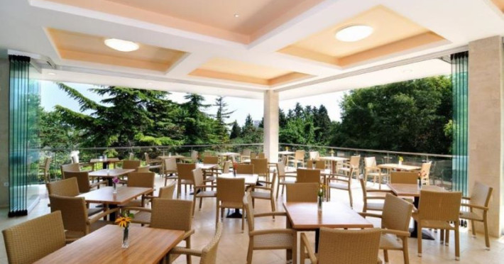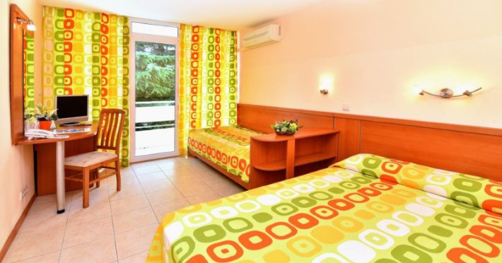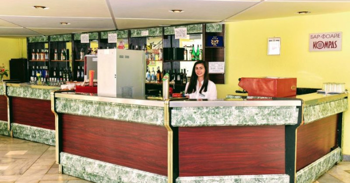 Kompas Hotel este situat la numai 700 de metri de plajă, într-o zonă liniștită și plină de verdeață, cu centrul comercial în apropiere. Înconjurat de grădini cu flori, hotelul oferă un cadru calm și relaxant. De asemenea, Palatul Reginei Maria din Balcic se află la 7 km distanță, iar centrul stațiunii Nisipurile de Aur este la doar 14 km distanță de hotel.Facilități hotel