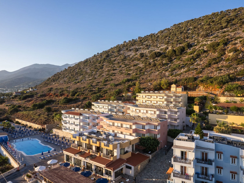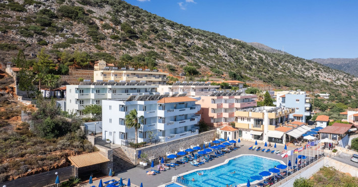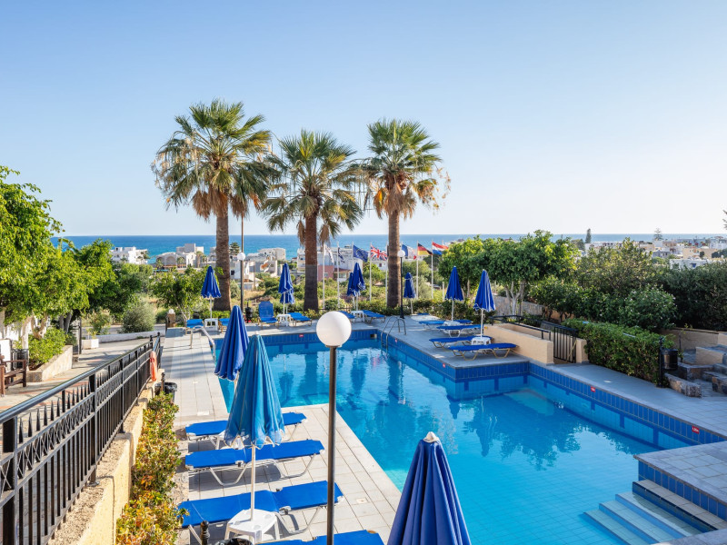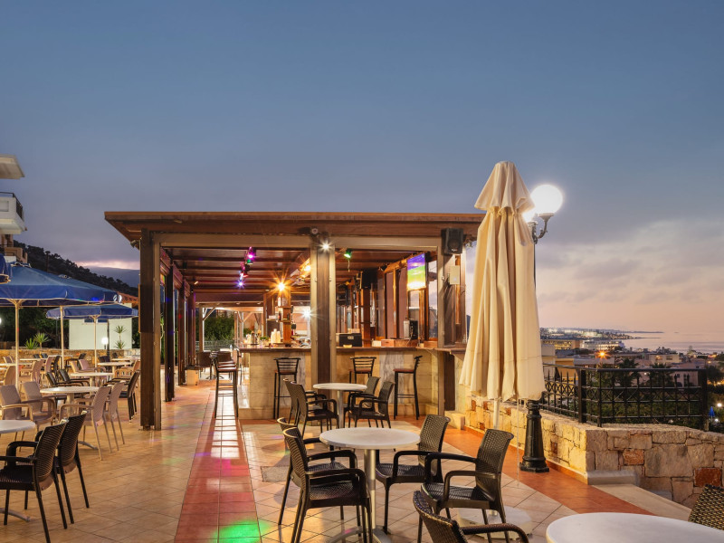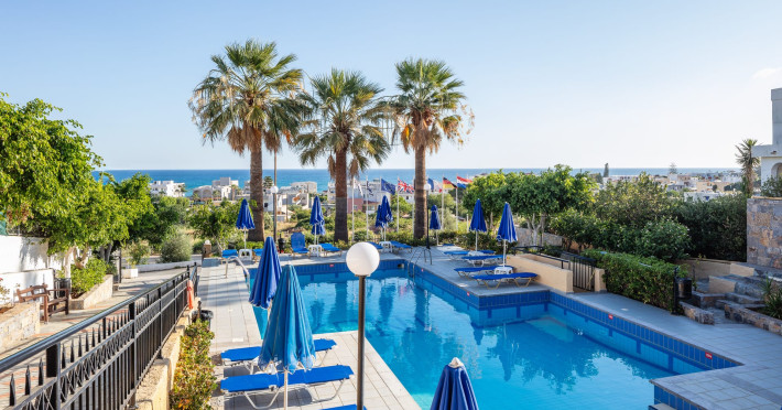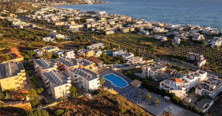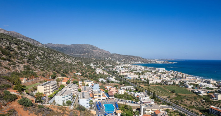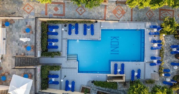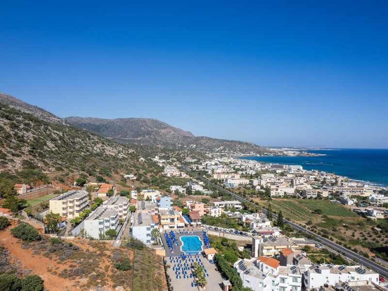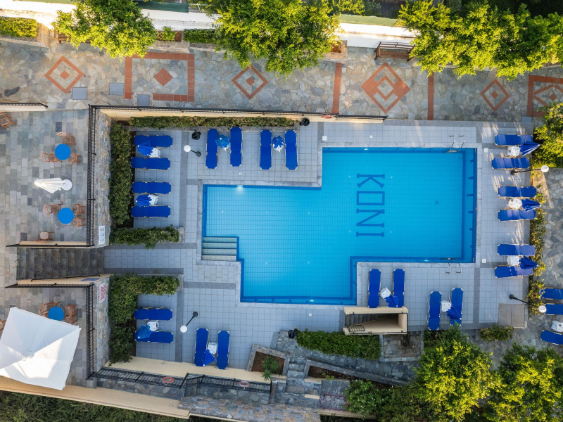 Koni Village Hotel is a beautiful complex situated just 800 m from the center of Stalis, 30 km from the airport and the capital of the island, Heraklion. The complex is built on a slope, offering an unparalleled panoramic view of the Aegean Sea. It is set in a well-maintained surrounding with walkways, sun terraces, and shady spots.