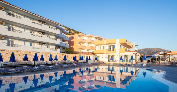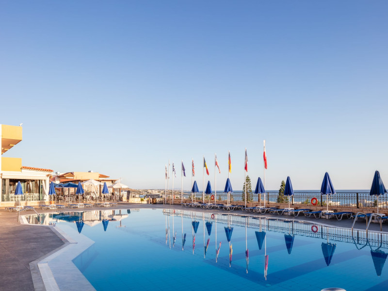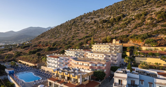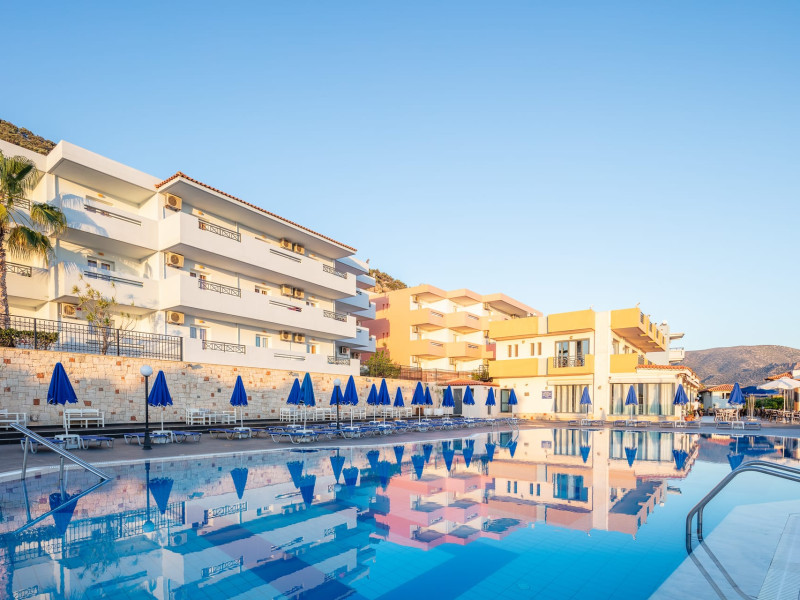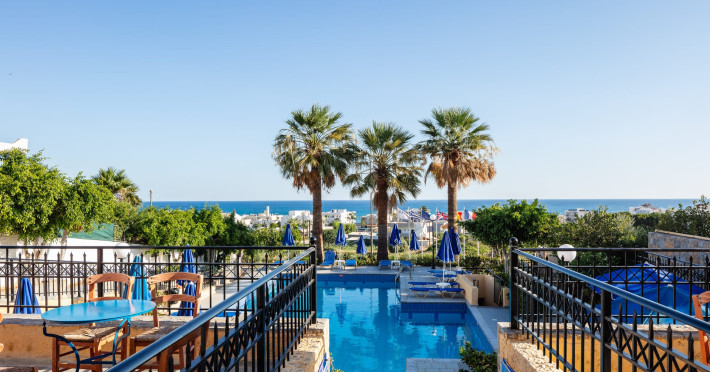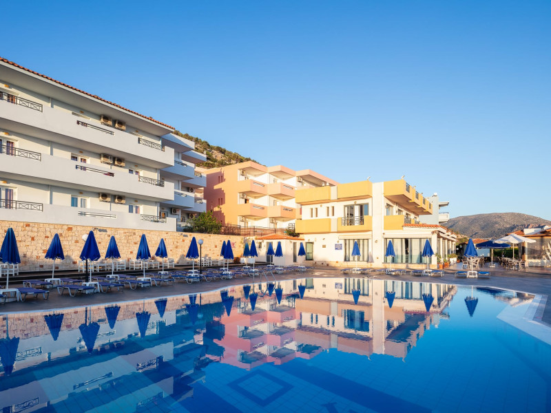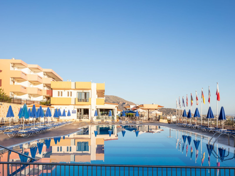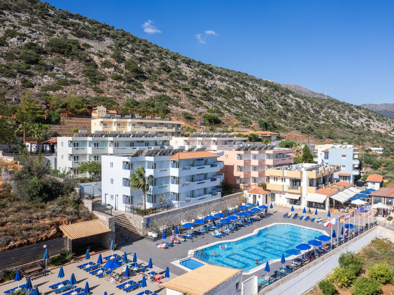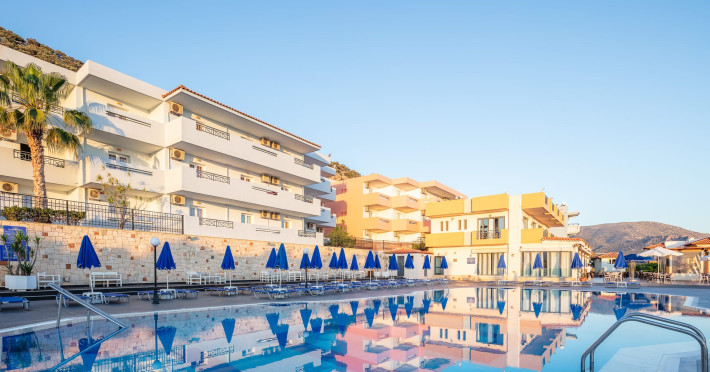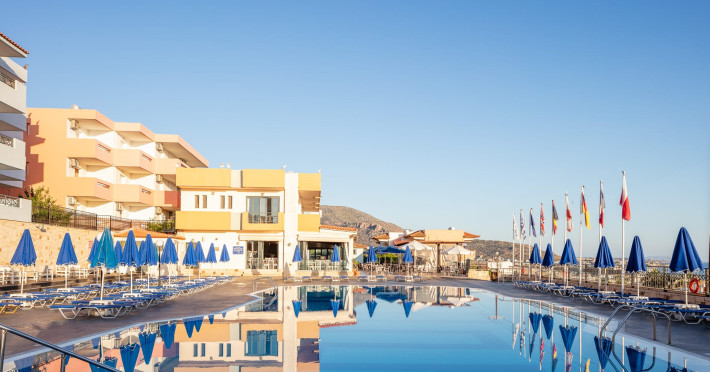 Koni Village Hotel is a beautiful complex situated just 800 m from the center of Stalis, 30 km from the airport and the capital of the island, Heraklion. The complex is built on a slope, offering an unparalleled panoramic view of the Aegean Sea. It is set in a well-maintained surrounding with walkways, sun terraces, and shady spots.