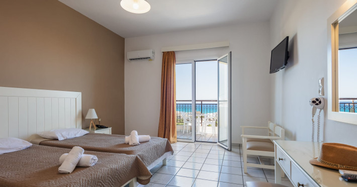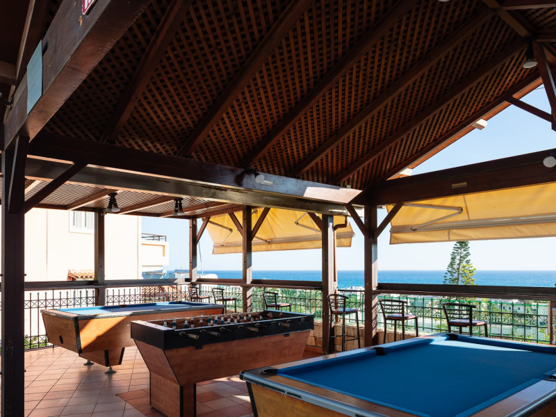 Koni Village guarantees a fine and friendly stay for all guests. This hotel is the perfect choice for couples of all ages, families, and groups of friends. If they want a cozy and spacious environment for their holiday, this hotel has exactly what they're looking for. Guests can choose from two room types and 111 rooms in total. All rooms are traditionally furnished and fully equipped. They provide a comfortable base for a pleasant holiday. The room includes cable TV, self-control air conditioning, a safety deposit box (extra charge), a hair dryer, a direct-dial telephone, a radio, and a baby cot (available upon request, free of charge). Guests can enjoy a balcony or terrace overlooking the blue sea, colorful flowerbeds, or beautiful landscape. Most rooms have a bathtub, and a few rooms have a shower. These studios boast breathtaking views of Crete's mountain range and the Aegean Sea.