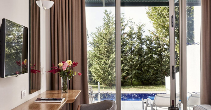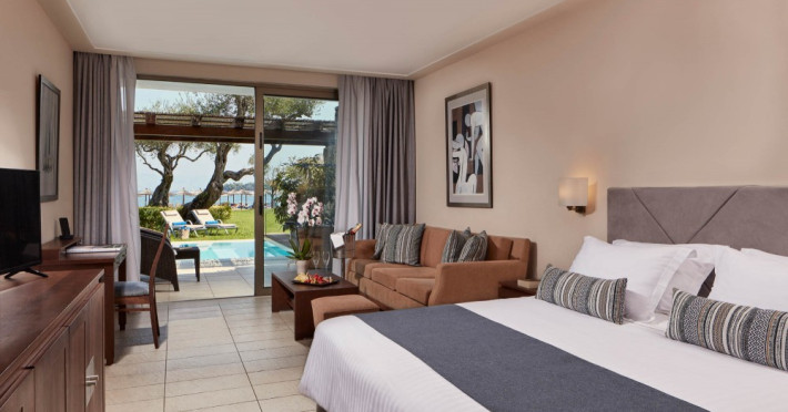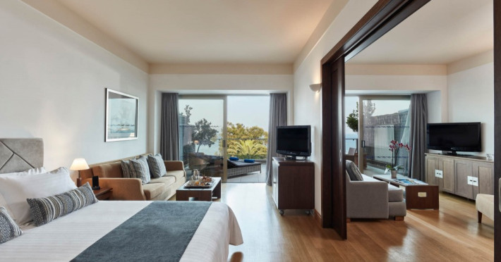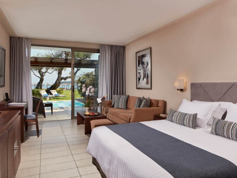 Kontokali Bay Resort & Spa offers discreet luxury and serene views in a lush garden by the sandy beach and is the ideal location for pure relaxation. Excite your senses and walk barefoot on the warm sand, enjoy the greenery and the horizon far away. Our dedicated team of professionals welcomes you at our beautiful Corfu Hotel with friendly and attentive services. Select among a wealth of accommodation, wellness and recreation options and indulge in special dining options. These wonderful resort services provide a great vacation away from it all for the whole family. A cozy hotel tending to your desires, a genuine hospitality experience the “Kontokali Bay Resort” way… In one of the finest Corfu hotels and beach resorts where nature is celebrated along with discreet luxury and unique landscapes, Kontokali Bay Beach Resort & Spa offers genuine hospitality to all guests seeking relaxation and rejuvenation. Lay back on the comfortable sun loungers by the beach and feel the Ionian aura surrounding you. There is no feeling like the soft sea breeze touching you, as it invites you to dive in the azure, transparent waters. Sip on delicious fruity cocktails on the beach, gazing at the infinite blue of the horizon. A place of natural marvel unveiled before your eyes on the most privileged spot of the island.With a plethora of accommodation options, our 5 star Corfu hotel allows you to find your perfect match and indulge in a comfortable, aesthetically beautiful and fully functional private retreat . Choose among our main building rooms, bungalows and suites and find the absolute place of relaxation that meets your individualized criteria. Our Corfu beach resort boasts a multitude of options, which will cover even the most refined tastes of our guests that other Corfu hotels fail to match. Whether you wish to spend your days in the lush gardens of the hotel or by the beach, you will find what you are looking for and much more.Friendly services and a sense of authentic Greek hospitality compose our principles, allowing us to offer all our guests at Kontokali Bay Resort & Spa a truly magnificent holiday experience. 5 star services are blended wonderfully with a personal touch and provide the ultimate place for our guests to relax, unwind and feel pampered. Standing out from other hotels on the island, Kontokali offers unparalleled views to the Ionian and the majestic sunset, completing a marvelous experience.When searching for hotels by the beach with stunning views and genuine hospitality standards, Kontokali should be the first name on the list. Boasting an exquisite location surrounded by nature, our hotel provides the ultimate relaxed atmosphere that fascinates our guests. Indulge in one of the finest Corfu hotels with superb facilities and a unique laid-back atmosphere that captivates your sDatorita dinamicitatii domeniului disponibilitatea ofertelor se modifica de la un moment la altul. De aceea ofertele sunt valabile in limita locurilor disponibile. Agentia nu este responsabila pentru eventualele neconcordante care pot aparea intre informatiile privind tarifele si alte detalii din site si informatiile primite in agentie. In aceste cazuri vor avea prioritate, intotdeauna, informatiile primite in agentie.