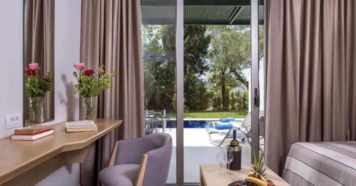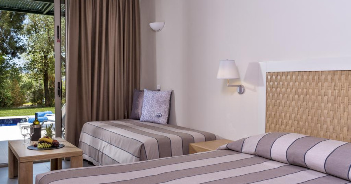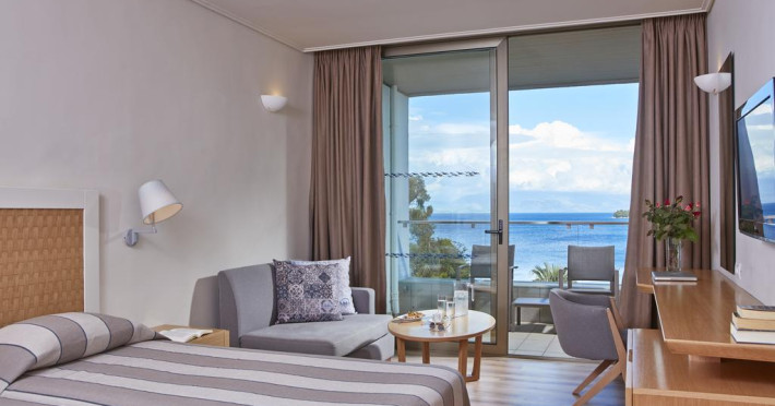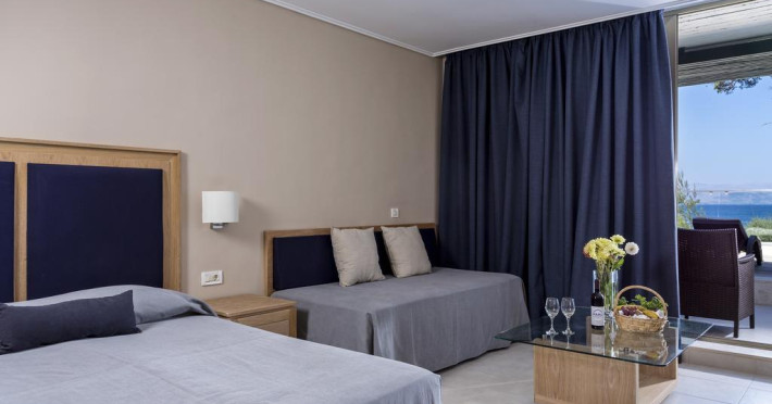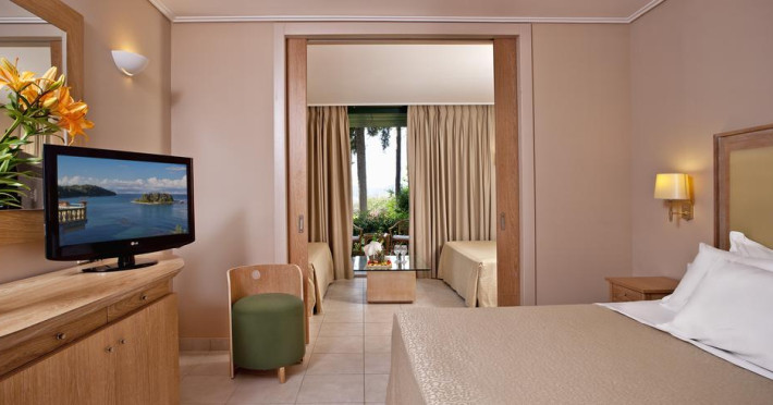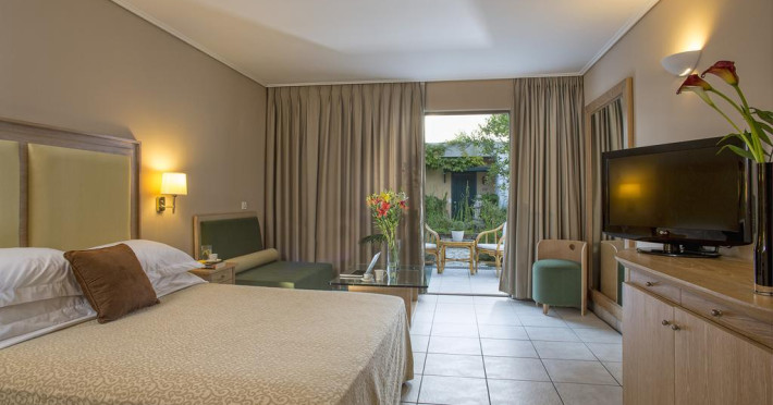 Unele camere au balcon cu vedere la mare sau la grădină. Camerele luminoase de la Kontokali Bay Resort & Spa sunt dotate cu gresie sau parchet, aer condiționat, Tv și seif. În camere există baie cu cadă sau duș ce are în dotare foehn și articole de toaletă gratuite. Fiecare cameră dispune de un aparat pentru preparare cafea sau ceai, cană-fierbător și minibar. Oaspeții pot solicita serviciul de room service pentru a servi masa sau diverse băuturi. Oaspeții au acces gratuit la serviciul Wi-fi în camere. Curățenia in cameră se face zilnic. Toate camerele spațioase de la Kontokali Bay Resort & Spa au zonă de relaxare cu canapea, ceea ce oferă un plus de confort. Proprietatea oferă camere pentru familie cu o suprafață mai mare și un număr mai mare de paturi față de cele standard. Se pot rezerva de asemenea camere pentru nefumători.
