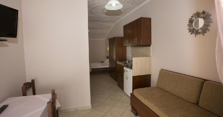 Facilitati camere: AC, TV, WiFi, uscator de par, telefon, frigider, fierbator, seif, chicineta, baie cu dus si balcon.