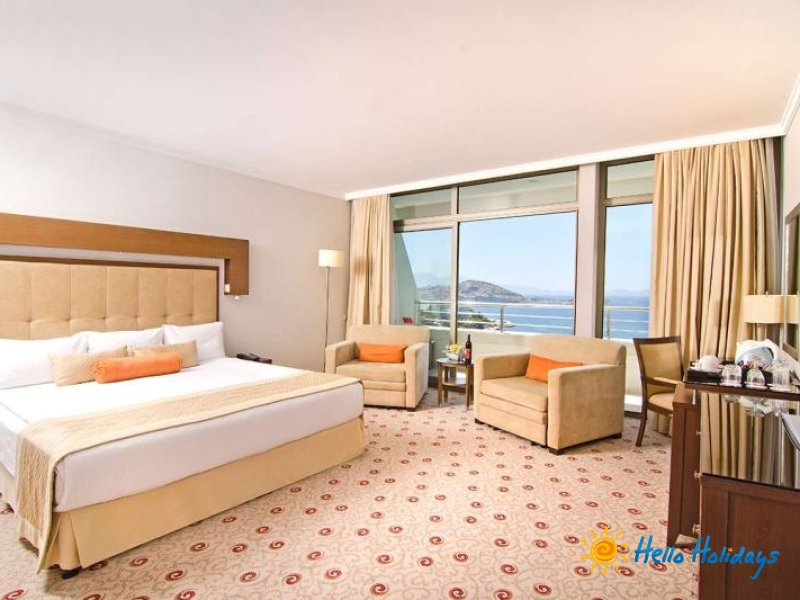 Korumar Hotel De Luxe este un complex de 5 stele care se află pe malul mării, în Kusadasi, și oferă plajă privată, piscină în aer liber și piscină interioară. Facilitățile de la Korumar Hotel De Luxe includ sală de fitness, teren de tenis și business centre. Proprietatea are, de asemenea, servicii de recepție cu program non - stop, concierge și închirieri auto. Se oferă acces gratuit la internet Wi-fi în spațiile publice. Parcarea este disponibilă la proprietate gratuit.