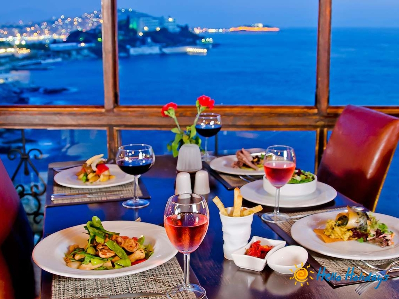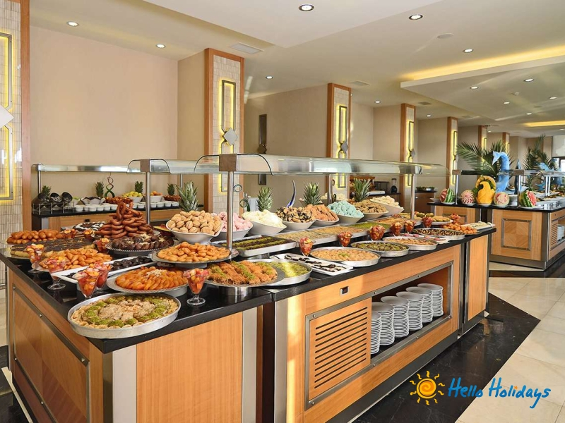 La Korumar Hotel De Luxe oaspeții au la dispoziție 4 restaurante unde pot savura mâncăruri delicioase, în stil bufet sau à la carte. Preparate din bucătăria internațională și turcească așteaptă să fie degustate în fiecare zi la micul dejun, prânz și cină. Masa poate fi servită atât în interior, cît si în aer liber, pe terasă, în funcție de vreme. 4 baruri sunt disponibile cu o ofertă variată de băuturi răcoritoare și alcoolice. În cadrul proprietății există și un snack bar care servește băuturi și gustări. Pentru cei cu anumite nevoi de nutriție, Korumar Hotel De Luxe oferă meniuri pentru diete speciale.