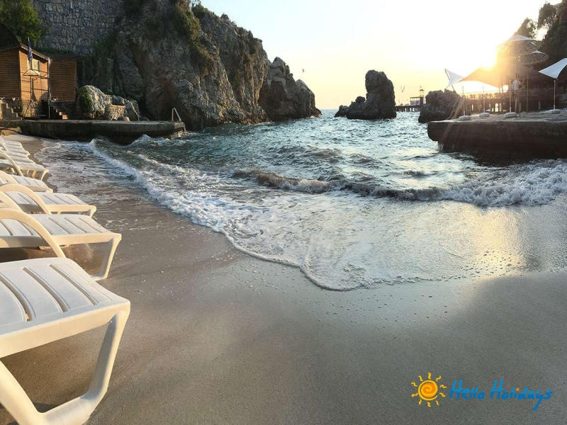 Korumar Hotel De Luxe dispune de plajă privată cu nisip. Pe plajă există șezlonguri și umbrele de plajă contra cost.