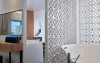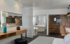 Fiecare cameră oferă cană-fierbător și mașină pentru prepare cafea sau ceai. Oaspeții pot solicita serviciul de room service pentru a servi masa sau diverse băuturi. Camerele confortabile de la Kosmoplaz au pardoseală de gresie/ marmură, aer condiționat, Tv cu canale prin satelit și seif. În camere există baie cu cadă sau duș, foehn, articole de toaletă gratuite, precum și halate de baie și papuci. Unele camere au balcon cu vedere la mare sau la piscină. Oaspeții au acces gratuit la serviciul Wi-fi în camere. Curățenia in cameră se face zilnic. Fiecare unitate de cazare are frigider. Proprietatea oferă camere pentru nefumători.