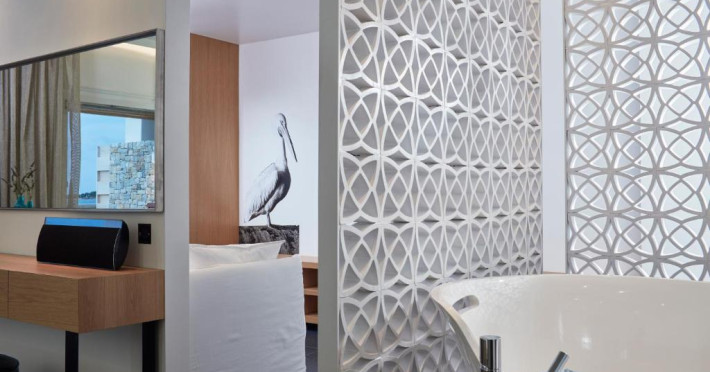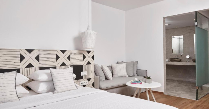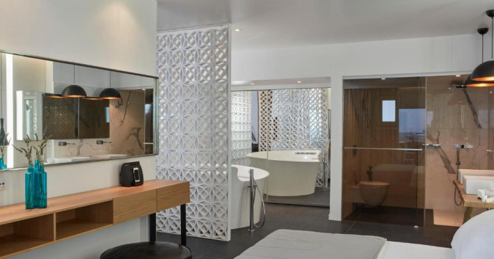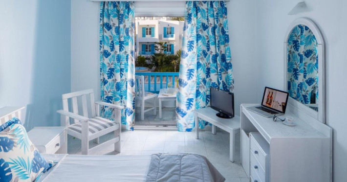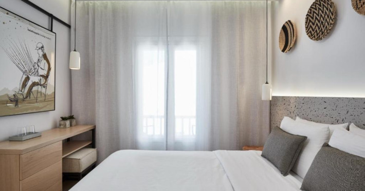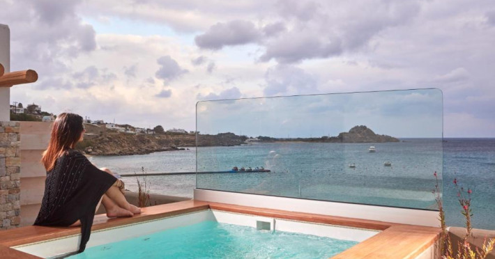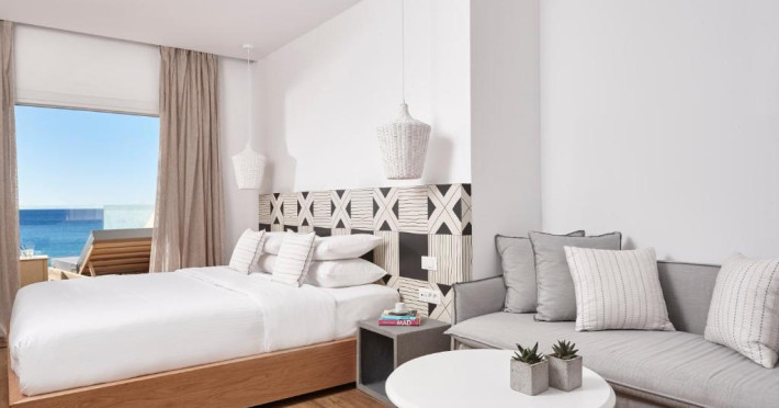 Kosmoplaz este o proprietate de 4 stele situată în Platis Gialos (Mykonos) care oferă camere cu vedere la mare, un restaurant, o piscină în aer liber și o terasă cu șezlonguri și umbrele de soare. Facilitățile de la Kosmoplaz includ și sală de fitness. Proprietatea are, de asemenea, servicii de recepție cu program non - stop, concierge și închirieri auto. Se oferă acces gratuit la internet Wi-fi în spațiile publice. Parcarea este disponibilă la proprietate gratuit.