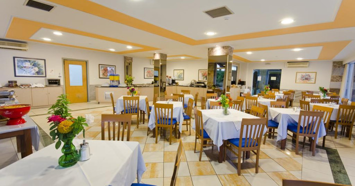 La proprietate există un snack-bar care oferă cafea, băuturi și gustări. Masa poate fi servită atât în interior, cît si în aer liber, pe terasă, în funcție de vreme.