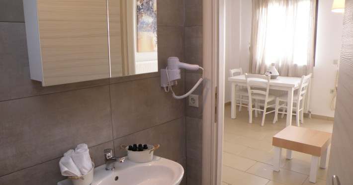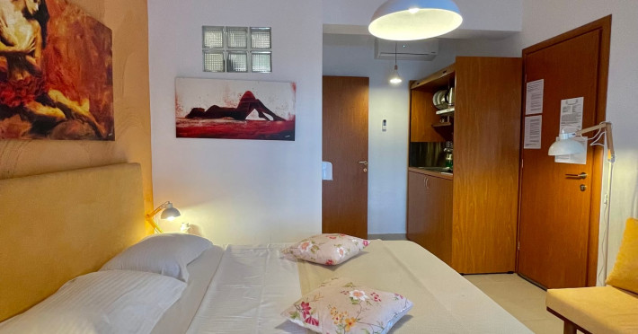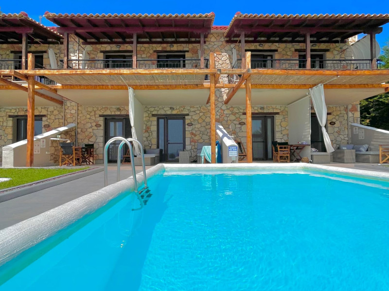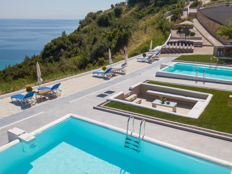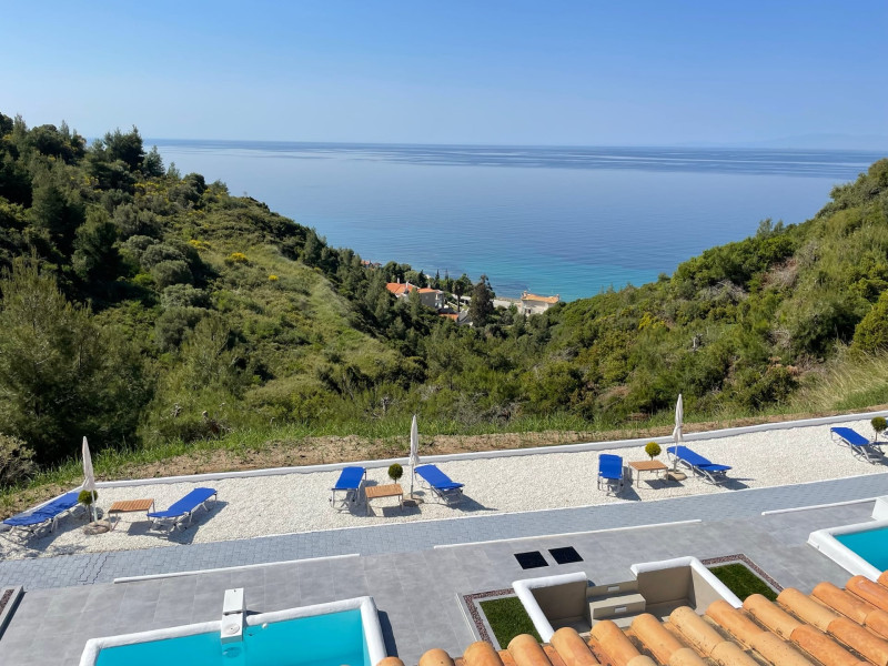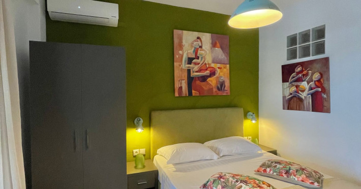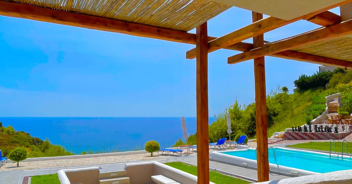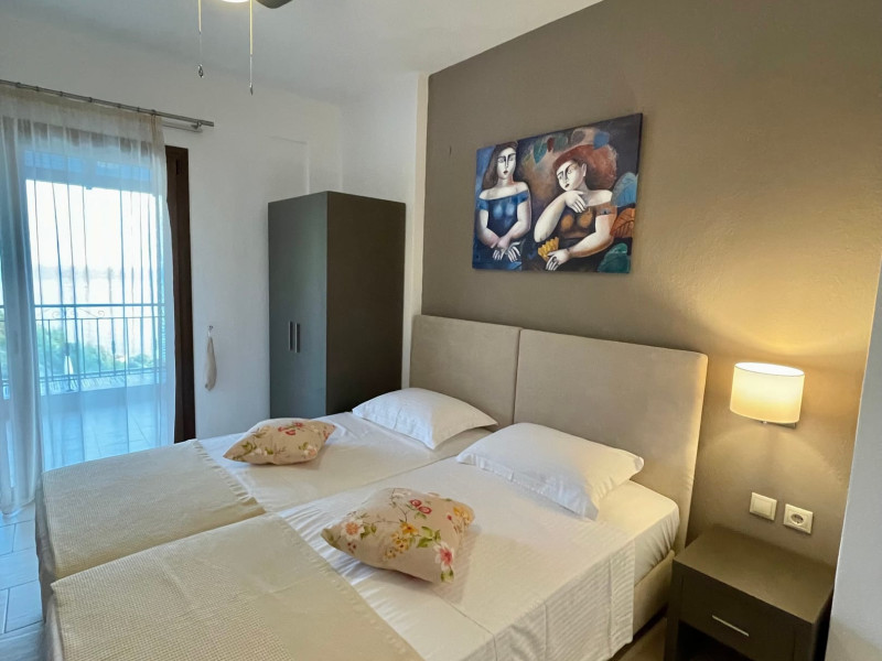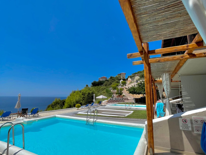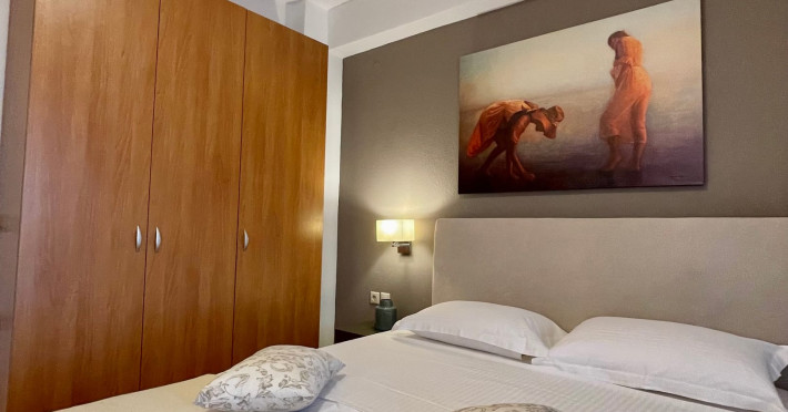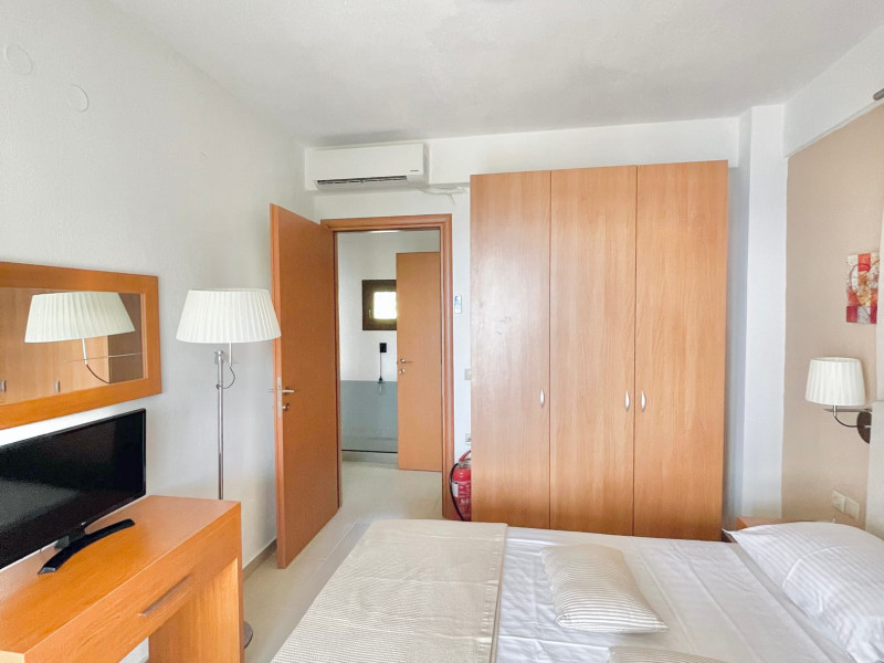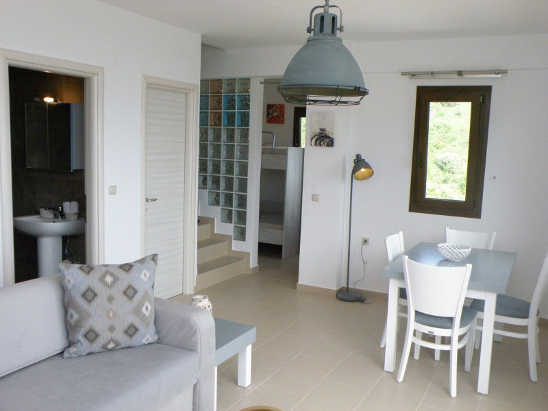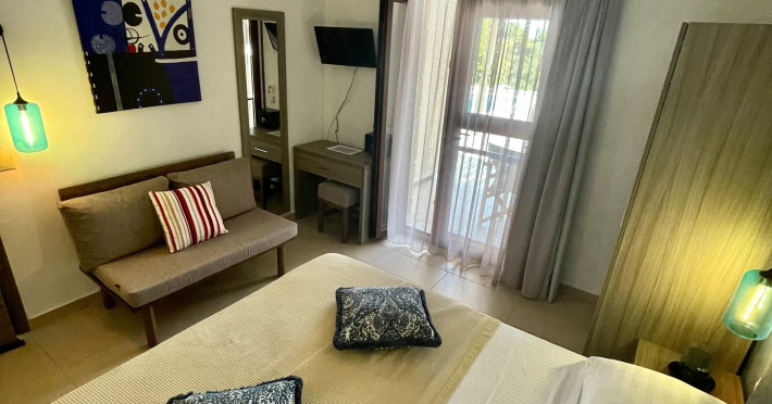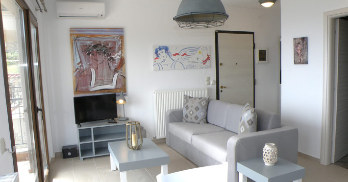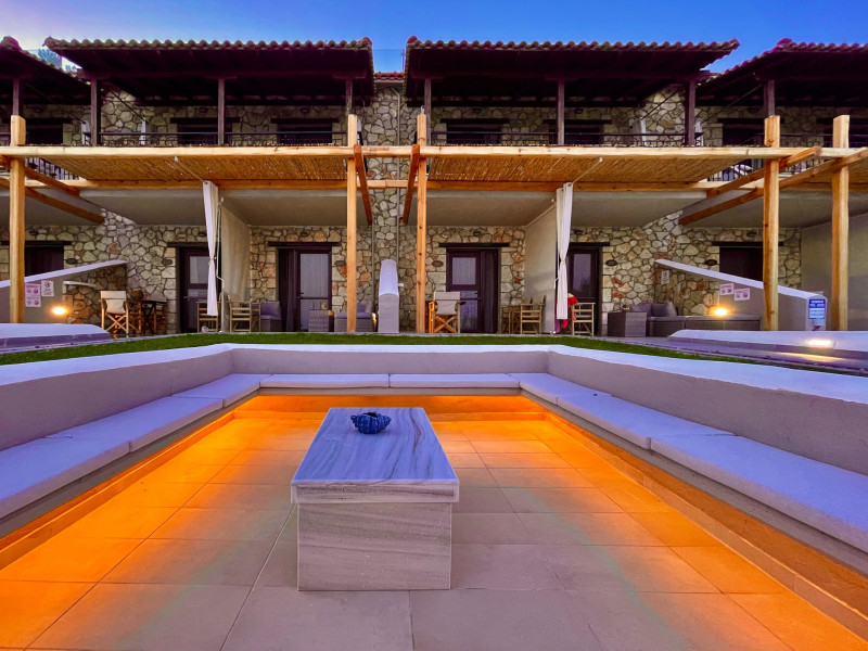 The hotel is located on a hill in front and above the sea, offering its guests a unique view to the Aegean sea and to a unique sunset, it consists of 3 buildings built in an area of 3.500 square meters, offering fully furnished rooms/apartments of various sizes and types-studios or apartments and maisonettes with one, two or three bedrooms from 2 up to 7 persons ,quality full equipment, kitchen, a/c, tv in all rooms, free wi-fi, daily cleaning service, reception desk, up on request laundry-breakfast-all day dining menu, airport shuttle etc.. All rooms have a panoramic view to the sea,