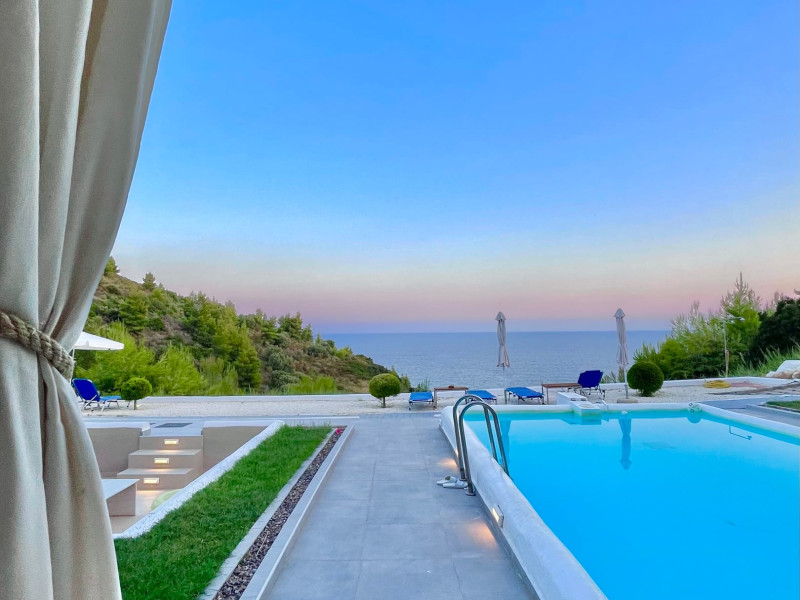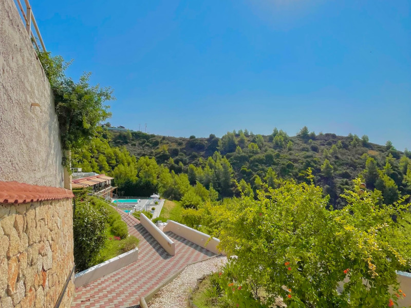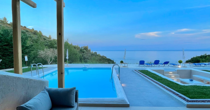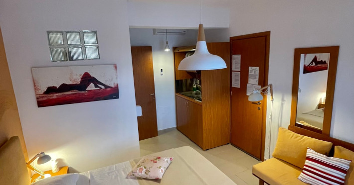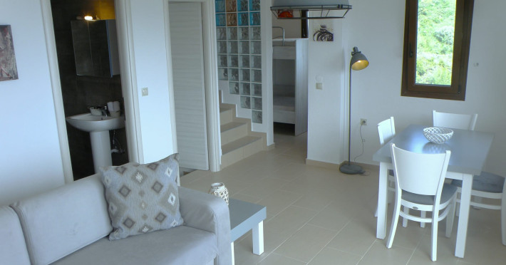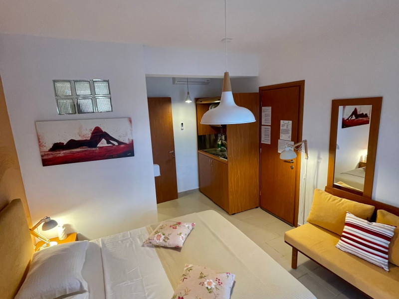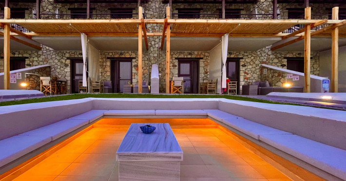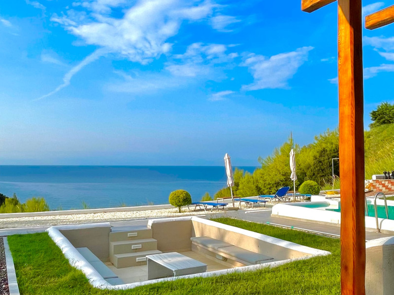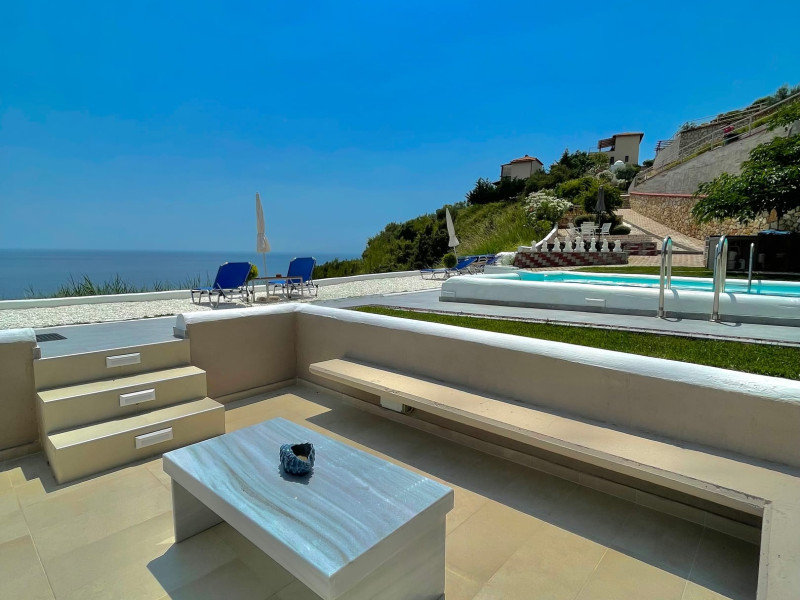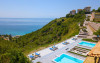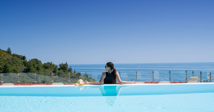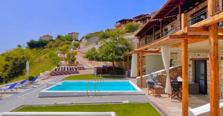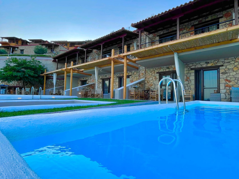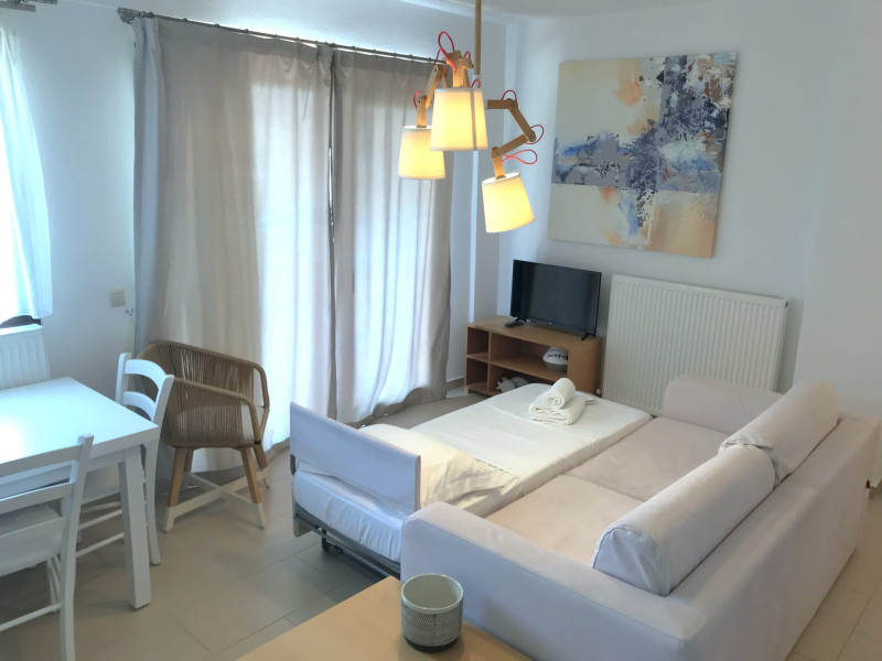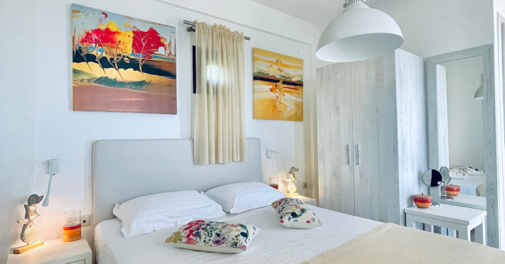 The hotel is located on a hill in front and above the sea, offering its guests a unique view to the Aegean sea and to a unique sunset, it consists of 3 buildings built in an area of 3.500 square meters, offering fully furnished rooms/apartments of various sizes and types-studios or apartments and maisonettes with one, two or three bedrooms from 2 up to 7 persons ,quality full equipment, kitchen, a/c, tv in all rooms, free wi-fi, daily cleaning service, reception desk, up on request laundry-breakfast-all day dining menu, airport shuttle etc.. All rooms have a panoramic view to the sea,