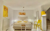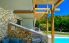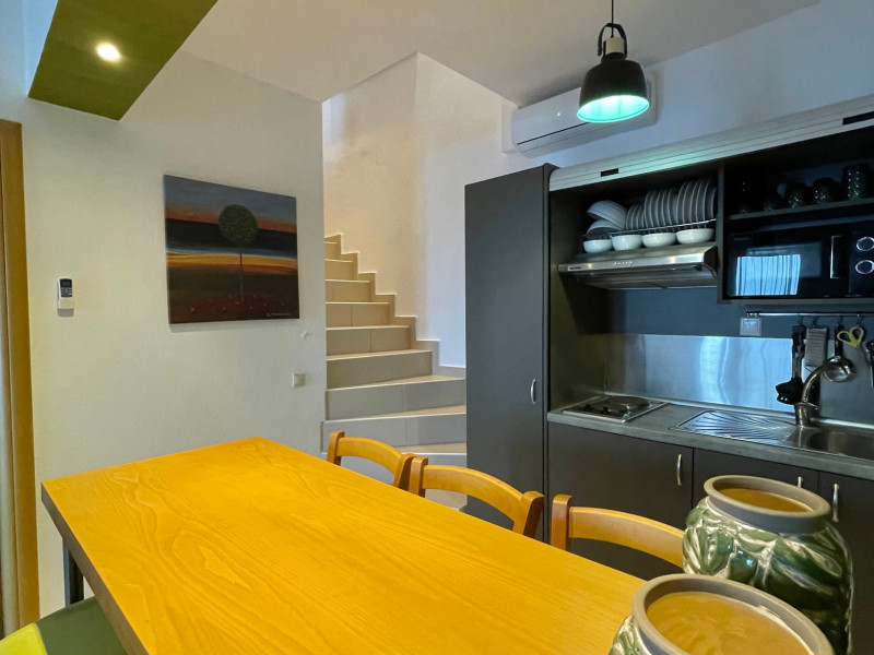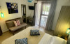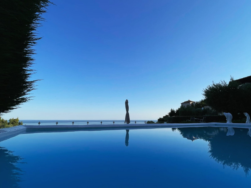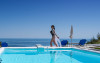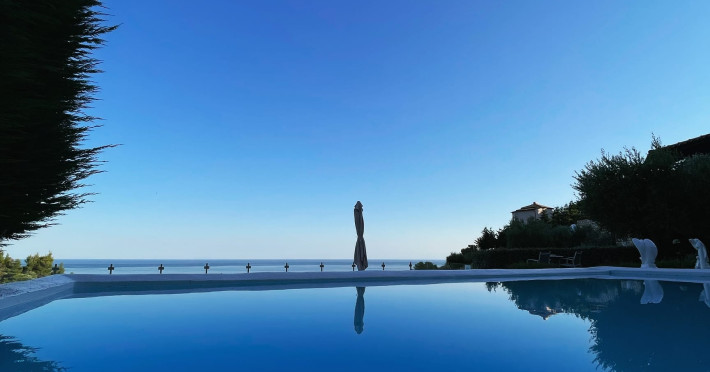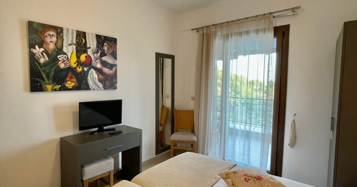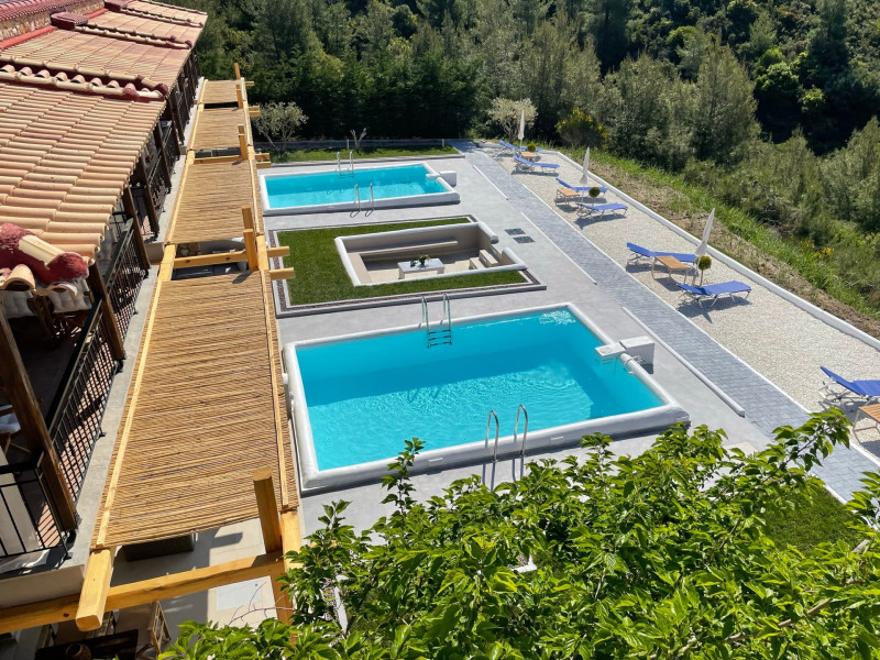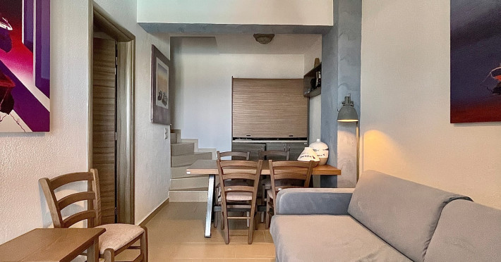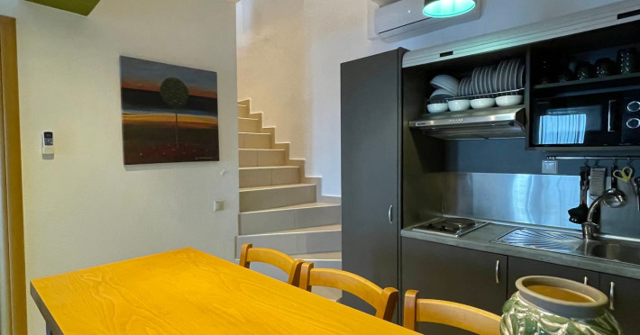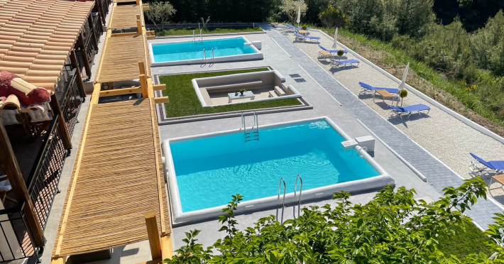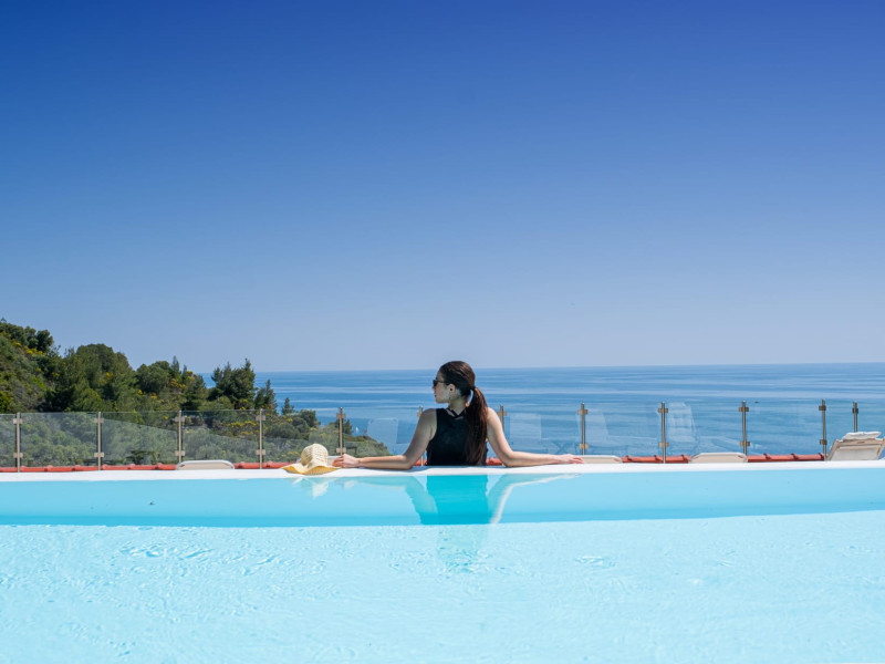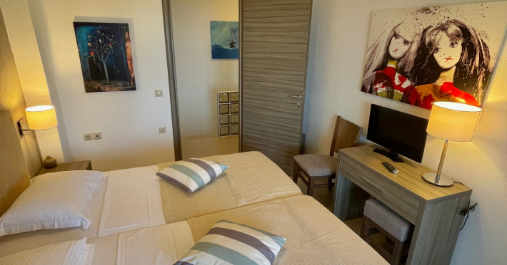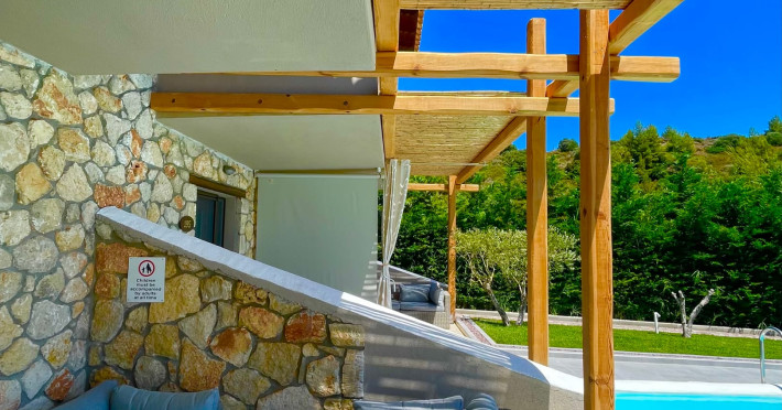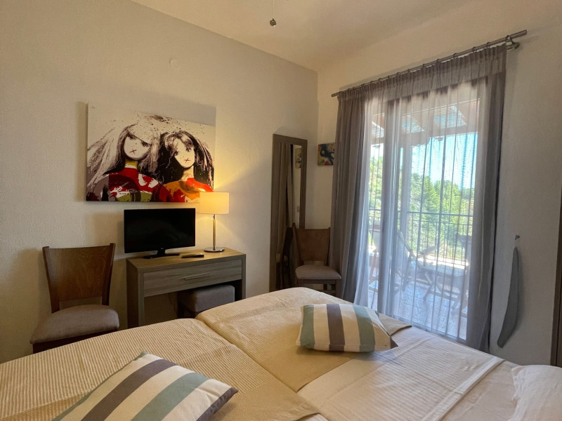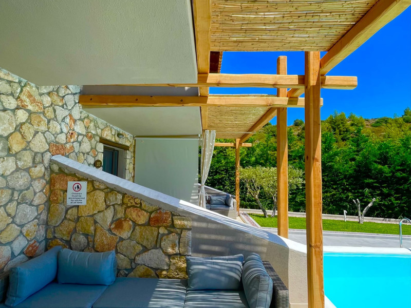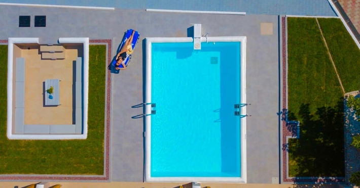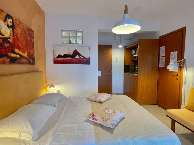 The hotel is located on a hill in front and above the sea, offering its guests a unique view to the Aegean sea and to a unique sunset, it consists of 3 buildings built in an area of 3.500 square meters, offering fully furnished rooms/apartments of various sizes and types-studios or apartments and maisonettes with one, two or three bedrooms from 2 up to 7 persons ,quality full equipment, kitchen, a/c, tv in all rooms, free wi-fi, daily cleaning service, reception desk, up on request laundry-breakfast-all day dining menu, airport shuttle etc.. All rooms have a panoramic view to the sea,
