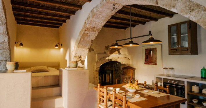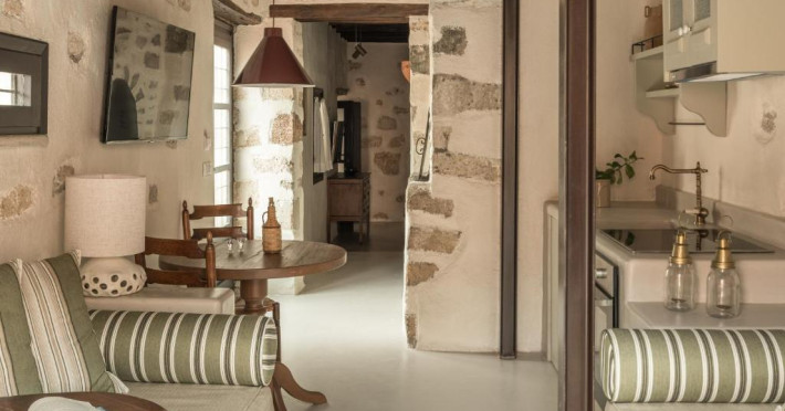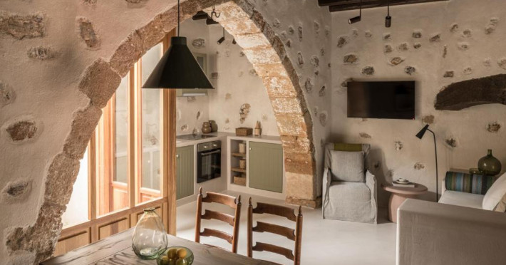 Complexul este construit in stilul un sat cretan traditional, situat in mijlocul unor plantatii de măslini. Este format din 41 de apartamente in stil unic, fiecare cu aer conditionat, chicinetă si balcon.