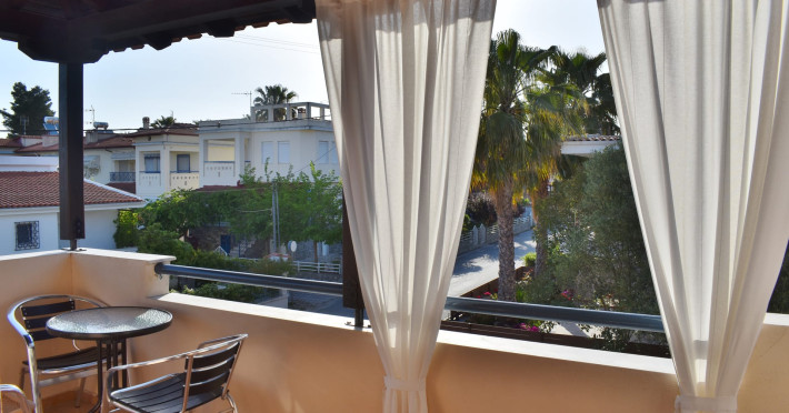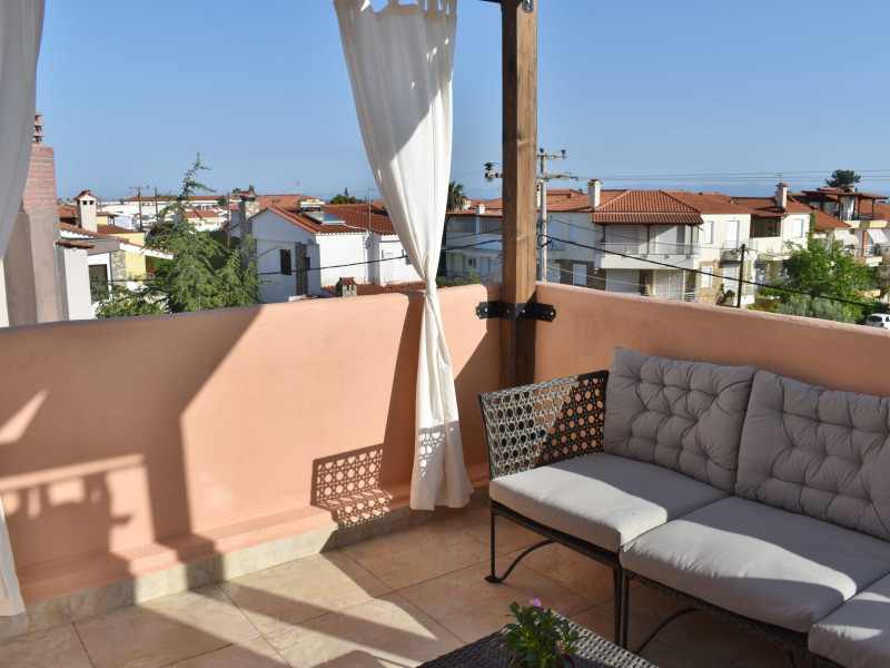 Kripis House- Villa Pefkohori with private Parking, for 4-5 people. Located near our studios, this air-conditioned vacation home features a balcony and a private garden with a barbecue. Also, free private parking is provided. House Size: 85 m², Bedroom 1: 2 twin, Bedroom 2: 1 full, Bedroom 3: 1 full, Apartment Size: 85 m² This air-conditioned maisonette is a 4-minute walk from the beach of Pefkohori and features a balcony and a garden with a BBQ. Also, there is a private parking space. Apartment Facilities: Balcony, Patio, View, Sea view, Garden view, Mountain view, Landmark view, Terrace, TV, Flat-screen TV, Air conditioning, Iron, Ironing facilities, Sitting area, Heating, Fireplace, Interconnecting room(s) available, Private entrance, Sofa, Soundproof, Tile/Marble floor, Mosquito net, Wardrobe/Closet, Cleaning products, Clothes rack, Sofa bed, Shower, Hairdryer, Toilet, Bathroom, Slippers, Guest bathroom, Additional bathroom, Toilet paper, Tea/Coffee maker, Kitchenette, Refrigerator, Microwave, Dishwasher, Kitchen, Dining area, Electric kettle, Kitchenware, Oven, Stovetop, Coffee machine, Dining table, High chair, Outdoor furniture, Outdoor dining area, Towels, Linens, Upper floors accessible by stairs only Bathrooms: 2Kripis House- Villa Pefkohoriwith private Parking, for 4-5 people. Located near our studios, this air-conditioned vacation home features a balcony and a private garden with a barbecue. Also, free private parking is provided. House Size: 85 m², Bedroom 1: 2 twin, Bedroom 2: 1 full, Bedroom 3: 1 full, Apartment Size: 85 m²This air-conditioned maisonette is a 4-minute walk from the beach of Pefkohori and features a balcony and a garden with a BBQ. Also, there is a private parking space.Apartment Facilities: Balcony, Patio, View, Sea view, Garden view, Mountain view, Landmark view, Terrace, TV, Flat-screen TV, Air conditioning, Iron, Ironing facilities, Sitting area, Heating, Fireplace, Interconnecting room(s) available, Private entrance, Sofa, Soundproof, Tile/Marble floor, Mosquito net, Wardrobe/Closet, Cleaning products, Clothes rack, Sofa bed, Shower, Hairdryer, Toilet, Bathroom, Slippers, Guest bathroom, Additional bathroom, Toilet paper, Tea/Coffee maker, Kitchenette, Refrigerator, Microwave, Dishwasher, Kitchen, Dining area, Electric kettle, Kitchenware, Oven, Stovetop, Coffee machine, Dining table, High chair, Outdoor furniture, Outdoor dining area, Towels, Linens, Upper floors accessible by stairs onlyBathrooms: 2