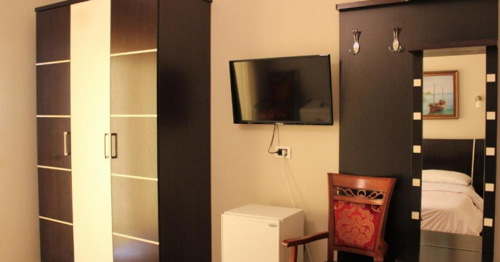 Toate camerele oferă aer condiționat, TV prin cablu și frigider mic. Baia privată include duș și uscător de păr, iar camerele oferă și balcon cu vedere la mare.
