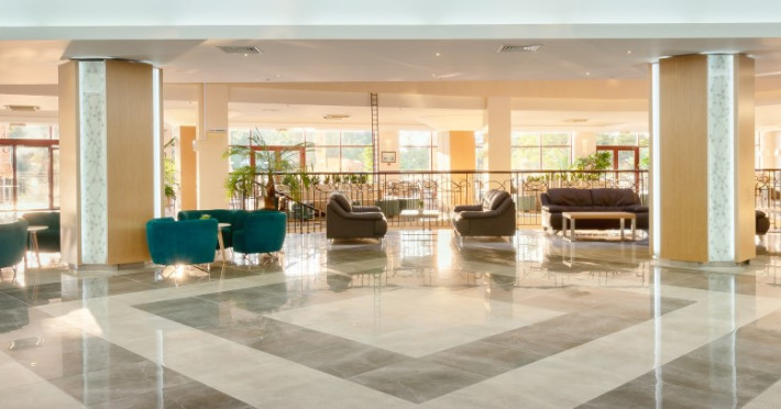 Hotelul pune la dispozitia oaspetilor urmatoarele facilitati: 2 lifturi, restaurant principal, restaurant "Food Corner", piscina interioara, piscina exterioara cu sectiune speciala pentru copii, lobby, lobby bar, bar la piscina, birou schimb valutar, magazin, rent a car, Wi-Fi gratuit in lobby, pe terasa, langa piscina exterioara si in camere, camera pentru depozitarea bagajelor, servicii spalatorie (contra cost), loc de joaca pentru copii, baby cot (gratuit, la cerere), bufet pentru copii in timpul pranzului si a cinei (01.07-31.08), camera de joaca pentru copii, programe de animatie, mini disco (iunie-septembrie), jocuri electronice (contra cost), umbrela si sezlonguri la piscina, prosoape la piscina (gratuit), fitness, tenis de masa, sah, dimino, mini fotbal, programe de animatie de 6 ori pe saptamana, Zona Relax (contra cost - masaj, Jacuzzi, baie de aburi, Hammam, coafor), teren de tenis (contra cost), biliard (contra cost), parcare (contra cost). Hotelul nu accepta animale de companie.
