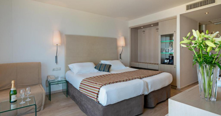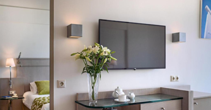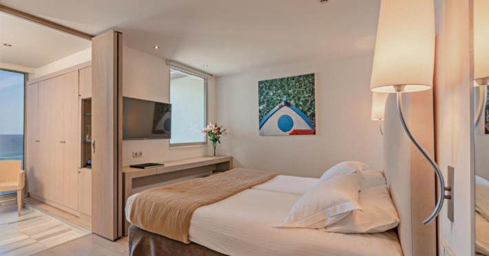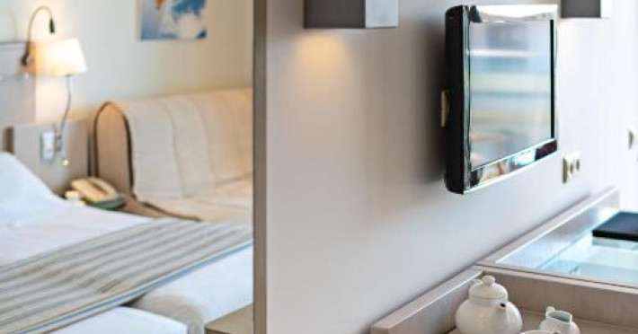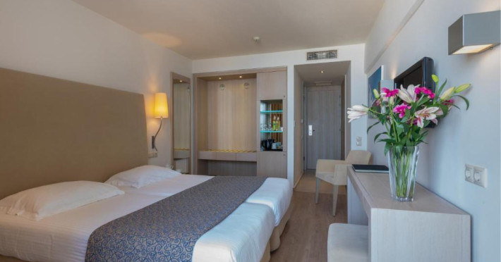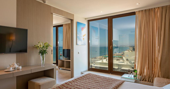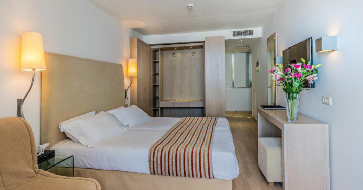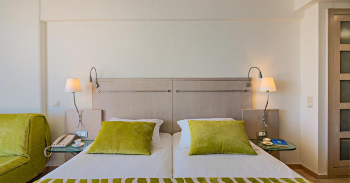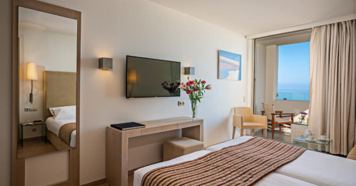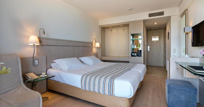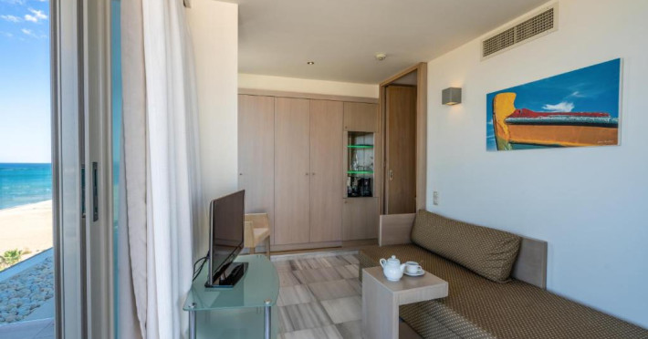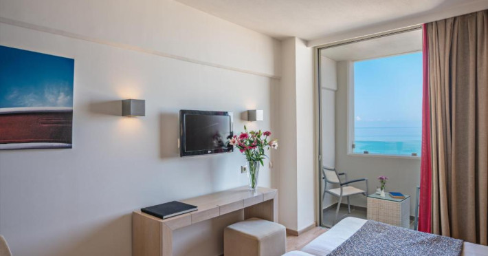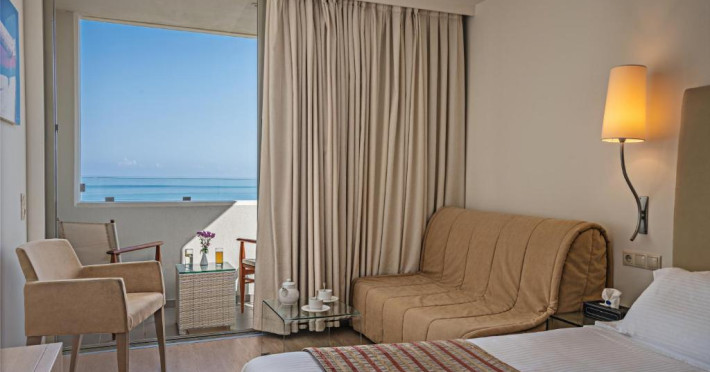 Toate camerele elegante ale hotelului Kriti Beach au aer condiționat și un balcon privat cu vedere la mare sau la munte. Tariful camerelor include micul dejun grecesc. Proprietatea asigură accesul gratuit la internet WiFi și parcare gratuită. La sosire oaspetii primesc o sticlă de vin.