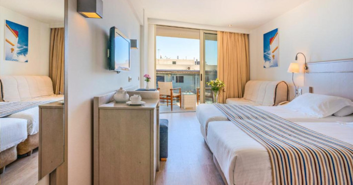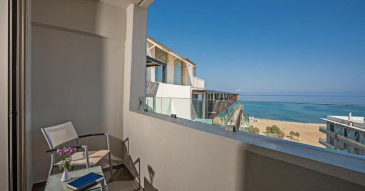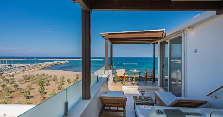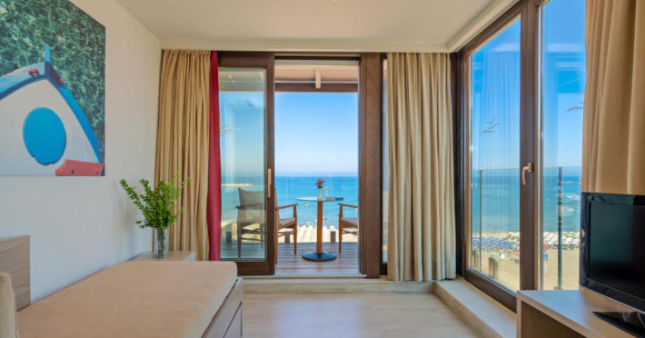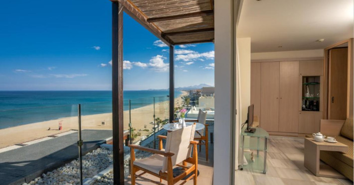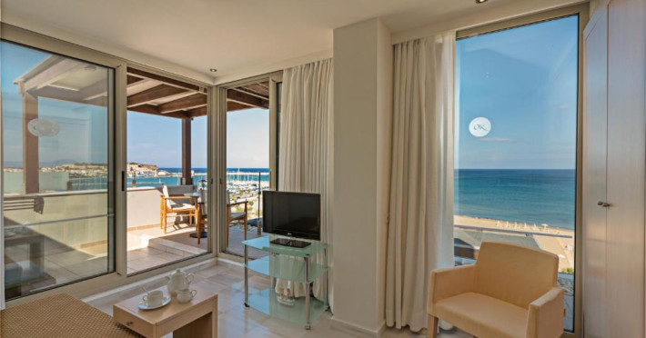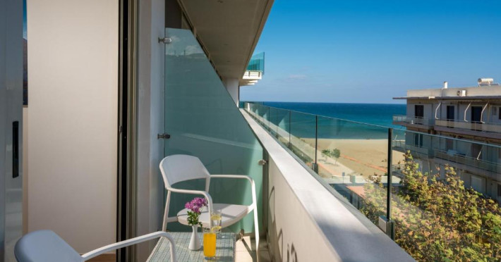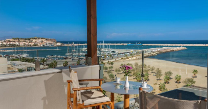 Hotelul Kriti Beach se află pe o plajă cu steag albastru din Rethimnon, la 5 minute de mers pe jos de portul venețian. Oferă o zonă incălzită, o saună și o baie de aburi, iar dimineața oaspeților pot săvoară un mic dejun grecesc certificat.