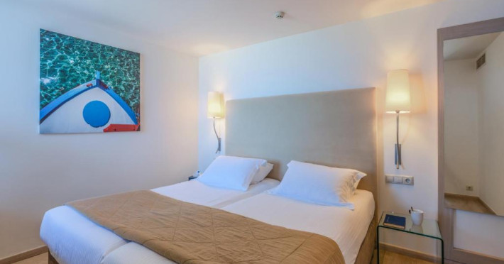 Snack barul de langă apropiere servește o varietate de specialități grecești mediteraneene pe toți și zilele noastre, iar oaspeții se pot bucura de specialități unice la restaurantul à la carte Chimera pentru cină. Micul dejun include miere de cimbrisor, supe si plăcinte traditionale, delicatese din carne din surse locale si băuturi din plante.