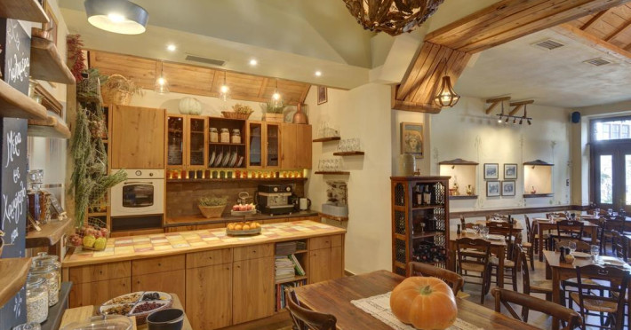 Camerele sunt decorate romantic in culori pastelate si calde si dispun de aer conditionat, baie cu dus, TV satelit, uscator pentru par, Wi-Fi, obloane la ferestre, racitor. Unele camere dispun de semineu.